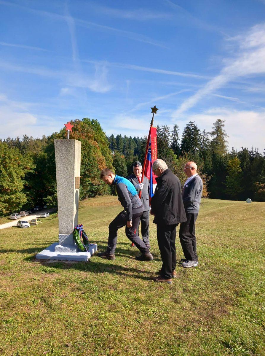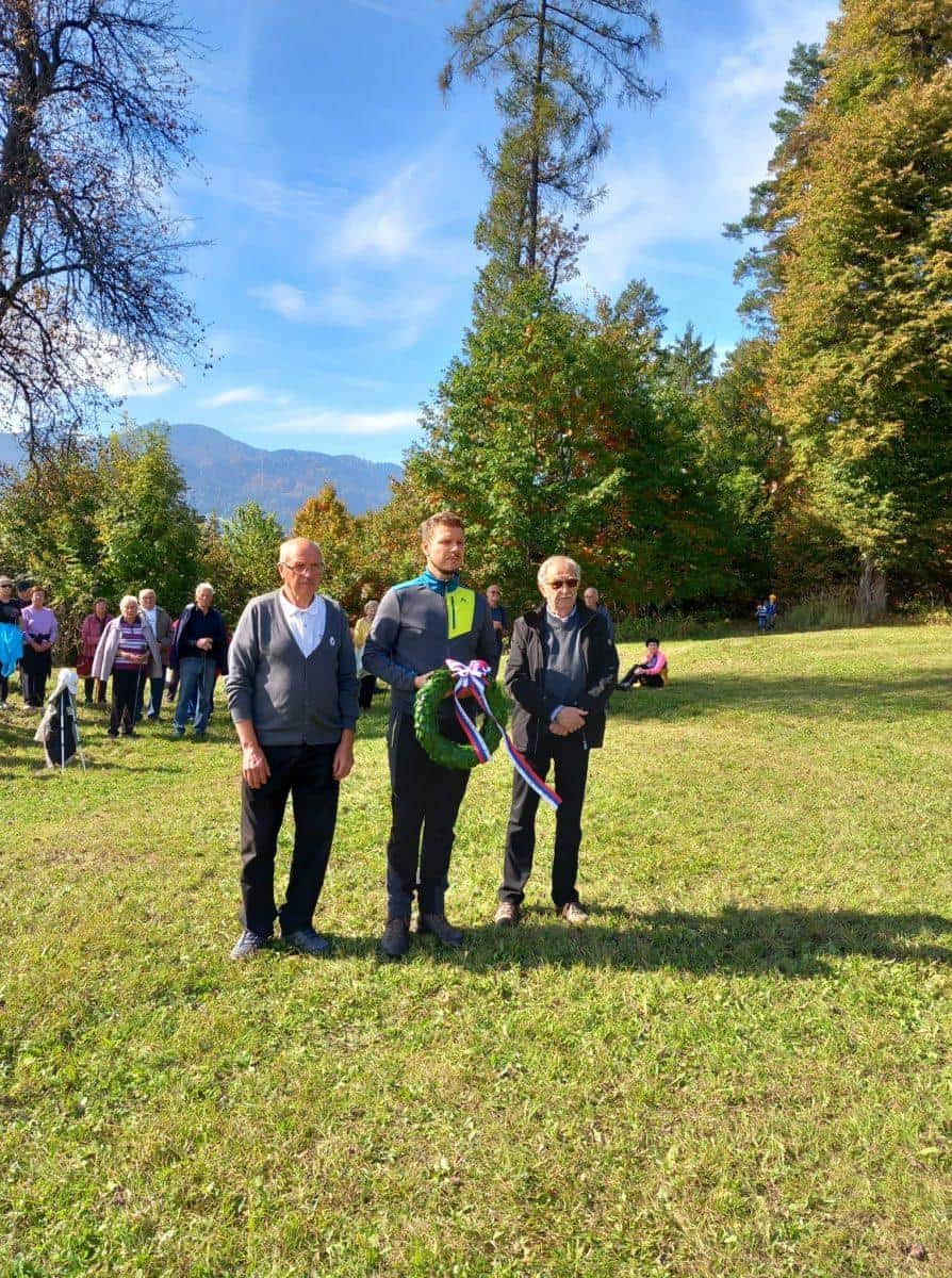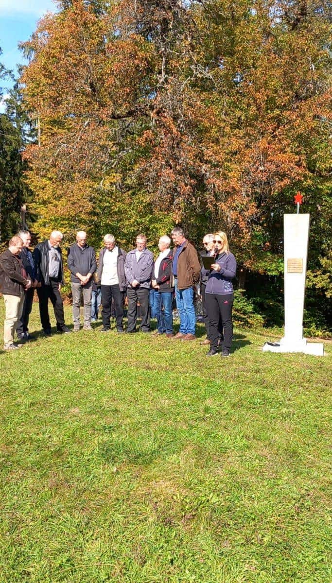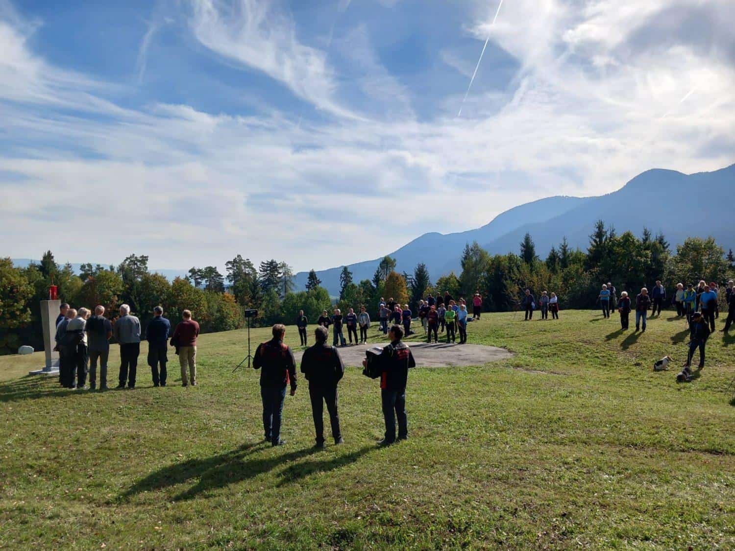 Številni pohodniki so se danes pred svečanim dogodkom udeležili tradicionalnega pohoda od Gimnazije Ravne do kmetije Naveršnik ter do spomenika.