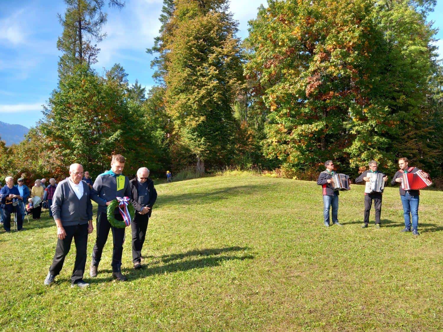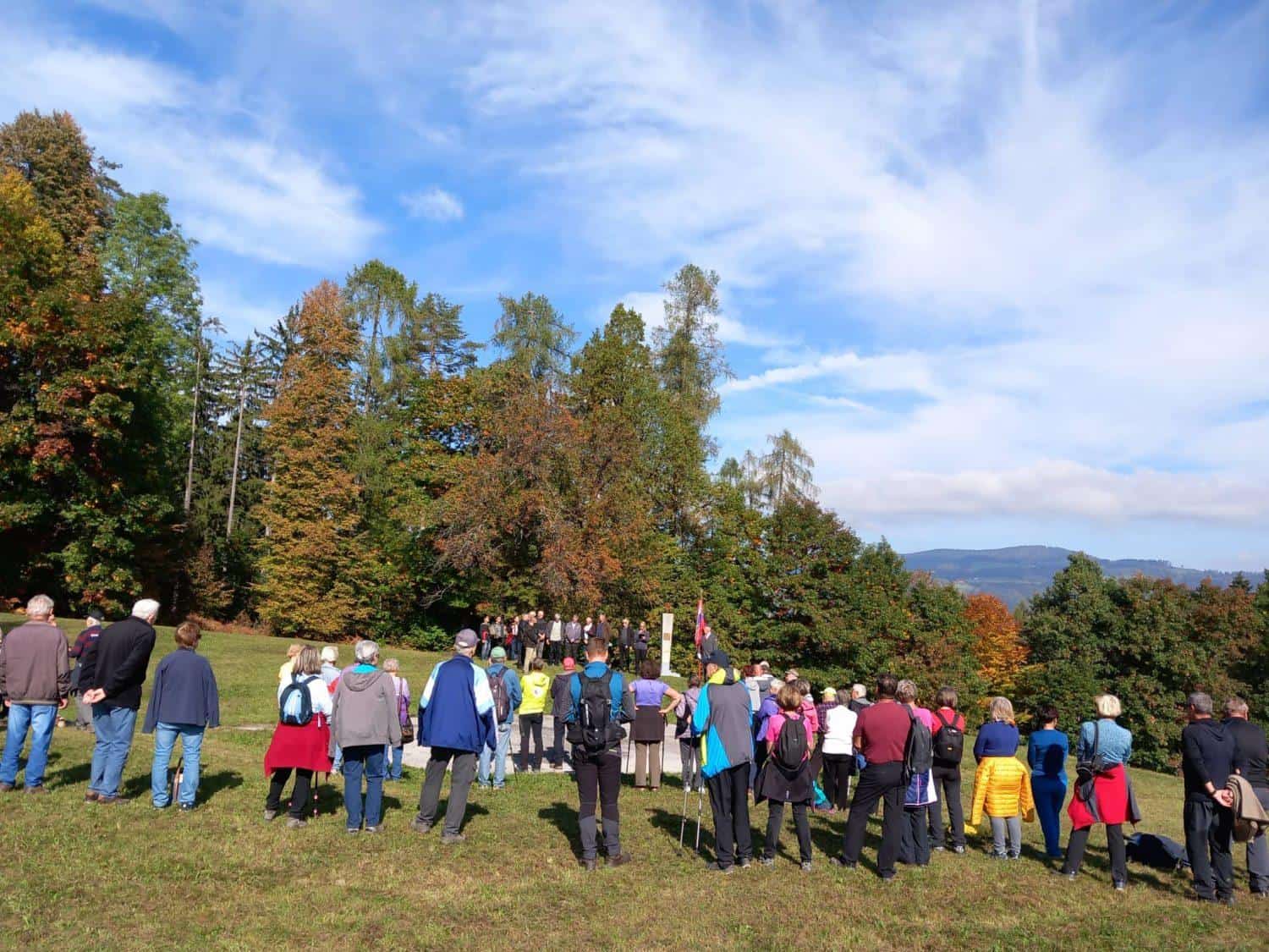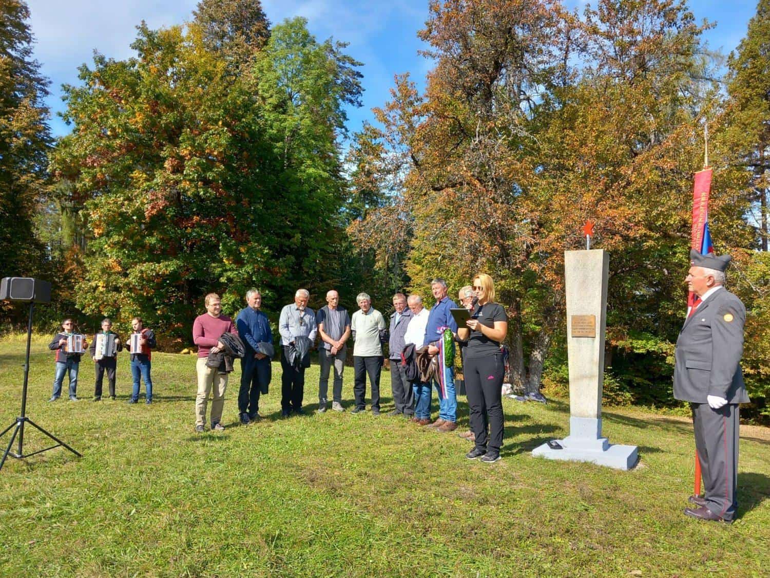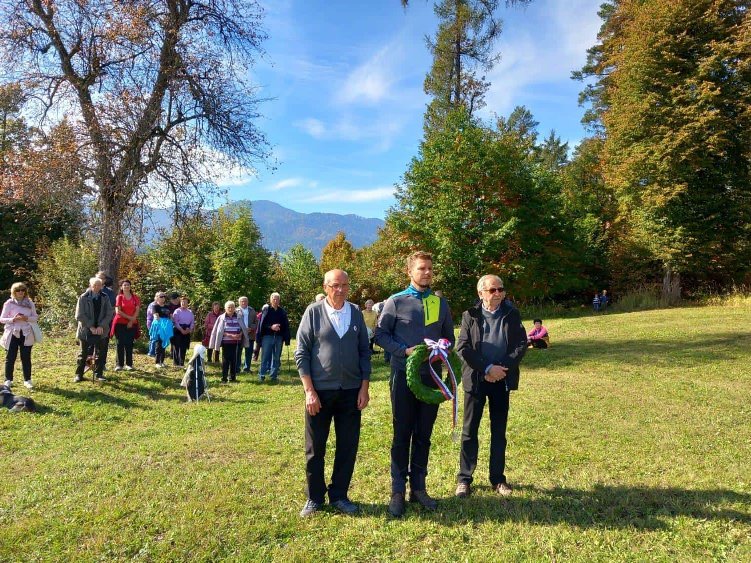 Številni pohodniki so se danes pred svečanim dogodkom udeležili tradicionalnega pohoda od Gimnazije Ravne do kmetije Naveršnik ter do spomenika.