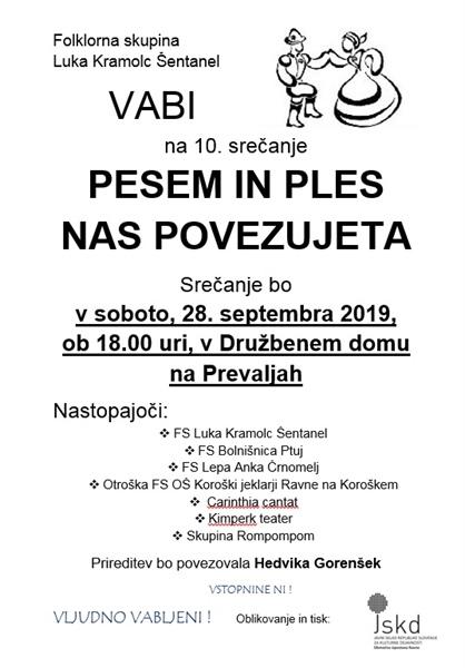 Na Prevaljah bo danes, 28. 9. 2018, potekala folklorna prireditev Pesem in ples nas povezujta, ki jo že deseto leto zapovrstjo pripravlja Folklorna skupina Luka Kramolc Šentanel. Organizatorji so tudi letos za obiskovalce pripravili pester kulturno glasbeni program, poskrbljeno pa bo tudi za dozo smeha.