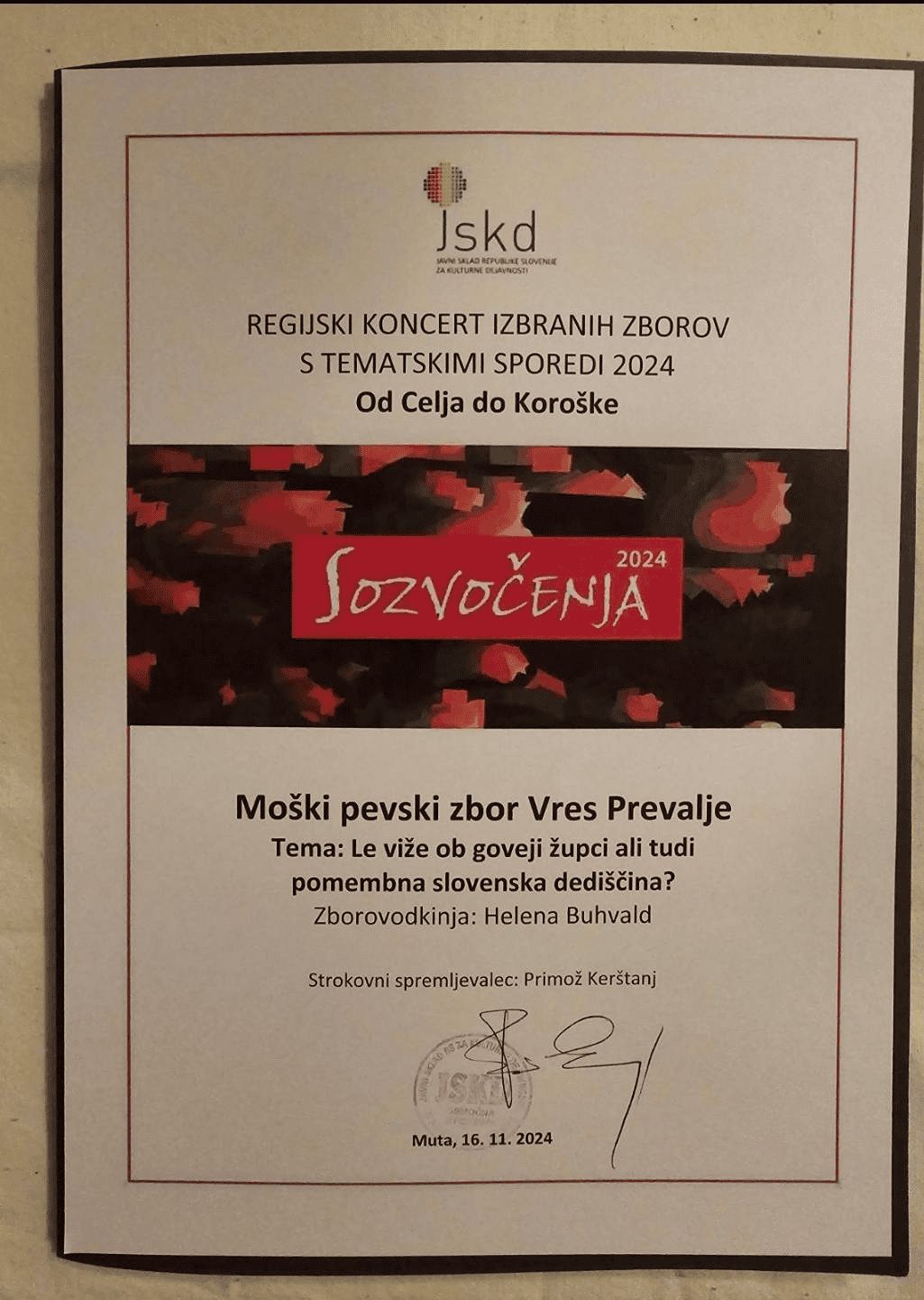 V okviru organizatorja Javnega sklada RS za kulturne dejavnosti je v soboto, 16. novembra 2024, na Muti potekal 𝗿𝗲𝗴𝗶𝗷𝘀𝗸𝗶 𝘁𝗲𝗺𝗮𝘁𝘀𝗸𝗶 𝗸𝗼𝗻𝗰𝗲𝗿𝘁 𝘃 𝗼𝗸𝘃𝗶𝗿𝘂 𝗦𝗼𝘇𝘃𝗼𝗰̌𝗲𝗻𝗷.