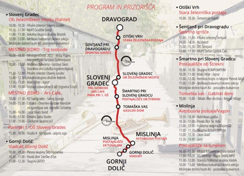 Vljudno vas vabijo, da se v soboto podate na kolo in se popeljete po tej prelepi kolesarski stezi ob poti pa postanete in prisluhnete kateri izmed nastopajočih skupin.