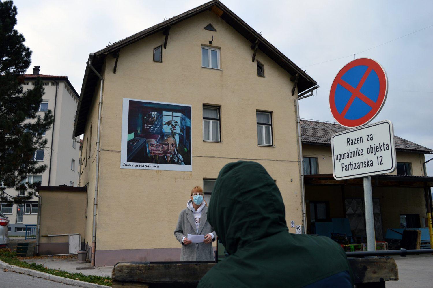 Za realizacijo zadnjega dogodka v nizu letošnje edicije Živela ustvarjalnost!, ki je potekal 1. decembra, je bila projektna ekipa primorana, zaradi ukrepov, povezanih s Covid-19, nekoliko prilagoditi izvedbo. Otvoritev je zato potekala virtualno, delo pa so na ogled postavili na prostem.