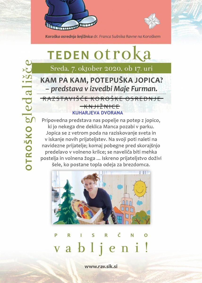 V ravenski knjižnici pa so bo letošnjem tednu otroka postavili razstavo izjav in avtoportretov otrok iz vrtcev Mežiške doline. Razstave so razpršene po vseh enotah njihove knjižnice in so na ogled od 5. do 9. oktobra 2020.