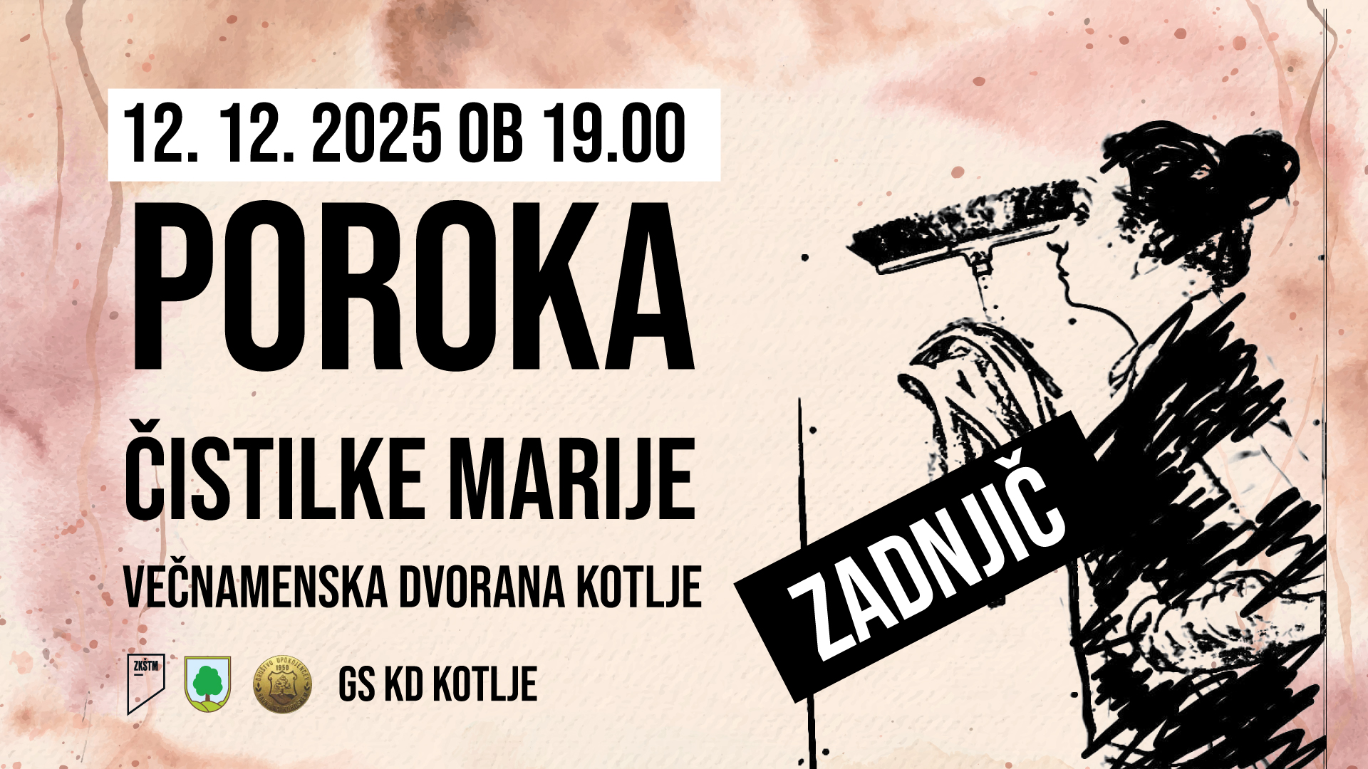 Predstavo v izvedbi Gledlaiške skupine KD Kotlje si boste lahko še zadnjič ogledali v petek, 12. decembra 2025, ob 19. uri v Večnamenski dvorani Kotlje.