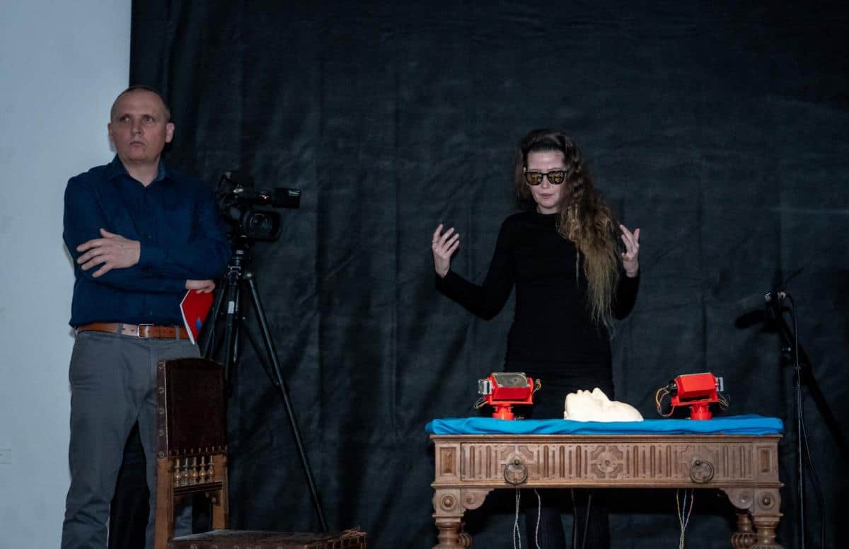 Operacijski sistem: transverzala si.zif je vizualno izpraznjeno filozofsko delo. S skromnimi komunikacijskimi sredstvi kompleksno izklesana osebna izpoved daje vtis gledališkega prostora s predstavo brez začetka in konca. Glavna protagonista postavitve sta robotska zvočnika inženirja in umetnika Stefana Doepnerja, ki uprizarjata princip medčloveškega odnosa znotraj in onkraj življenja. Do tja nas popelje šest zrcalno postavljenih monitorjev, katerih funkcija je osvetljevanje zatemnjenega prostora in časa. Na ekranih vidimo enak motiv: fotografijo lesenega Kristusa, za katerega se zdi, kot da lebdi na modri svili. Od okončin mu je ostala le še leva noga.