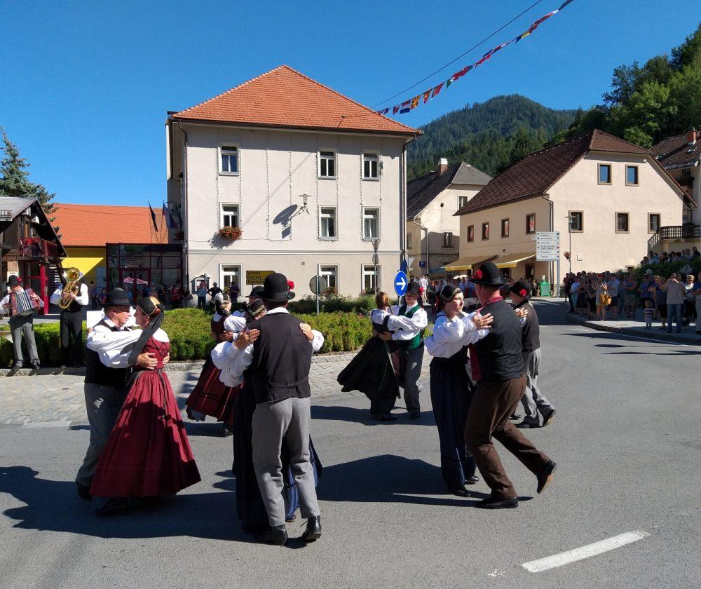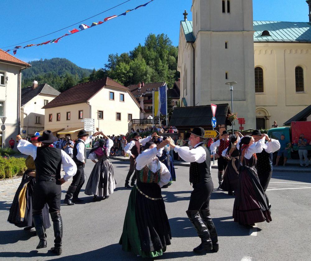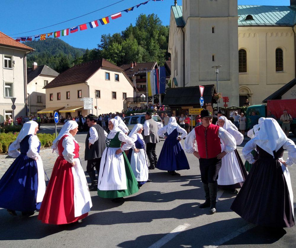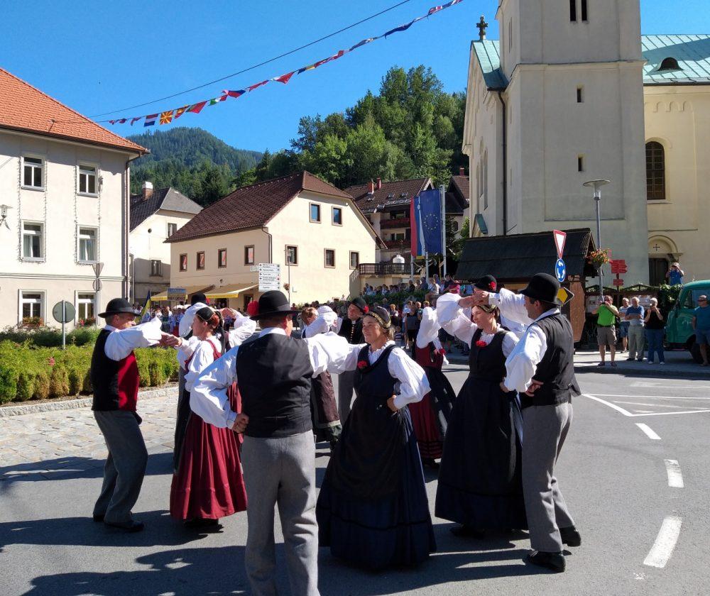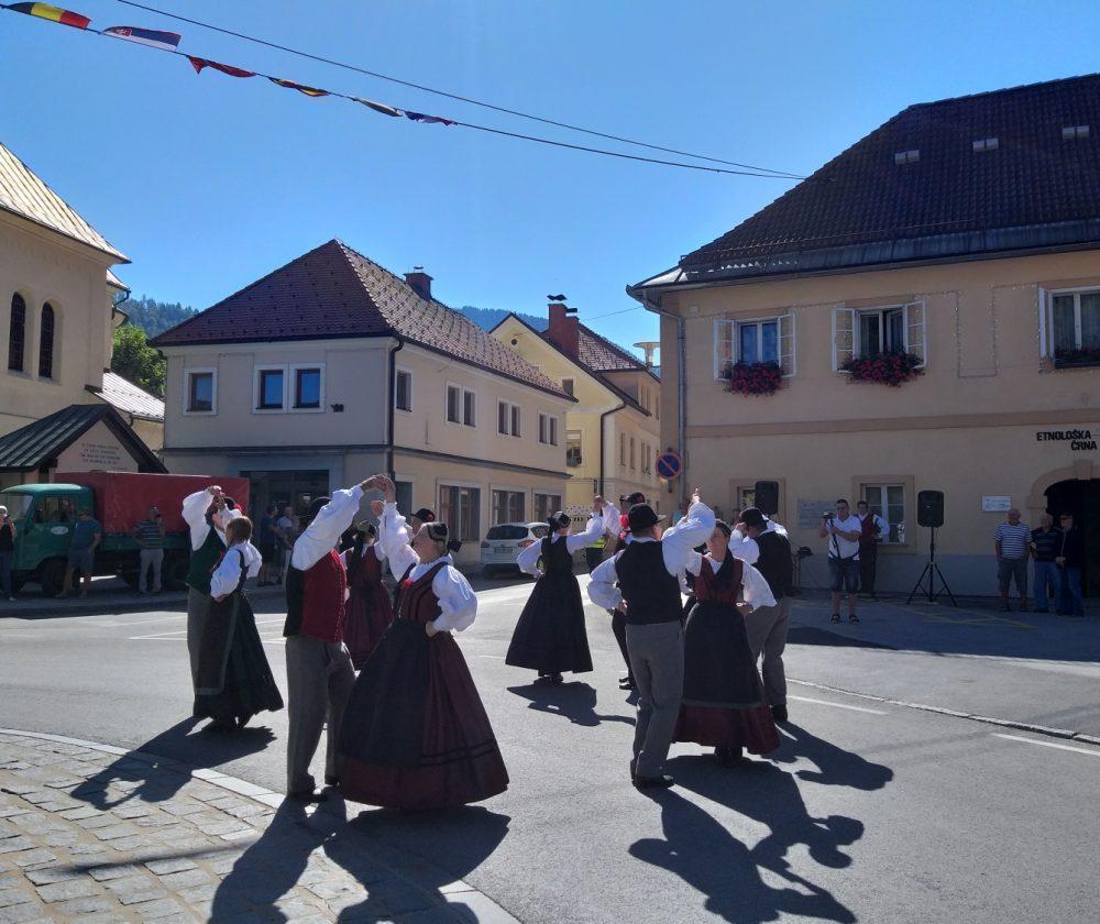 Tako je v Črni pelo, igralo in plesalo približno 130 plesalk, plesalcev in muzikantov, ki so množici obiskovalcev najprej popestrili nedeljsko popoldne s povorko in krajšimi predstavitvami na vasi oziroma v centru Črne, piko na i pa je dodalo tudi sončno vreme.