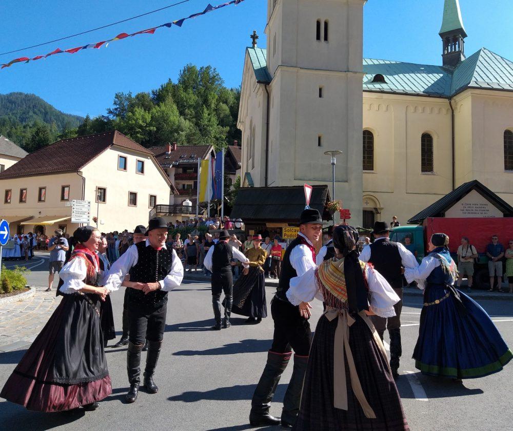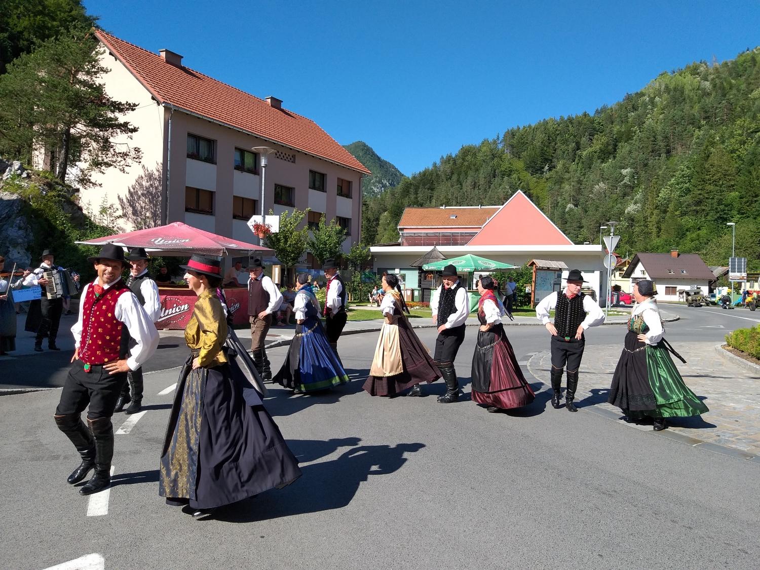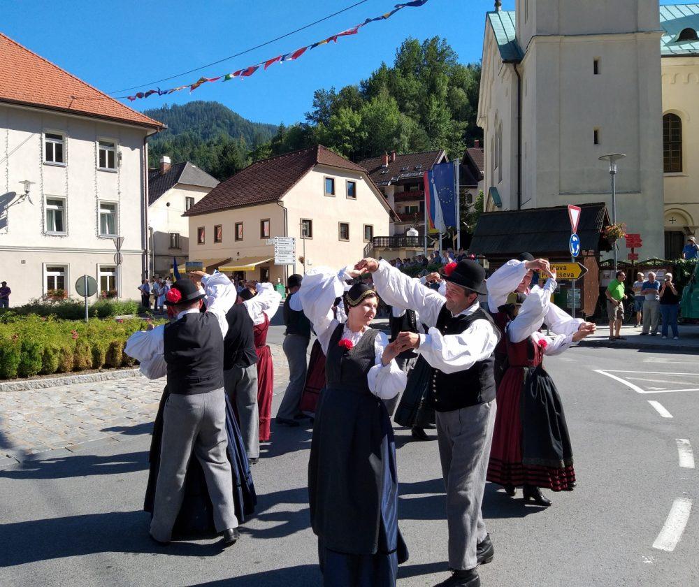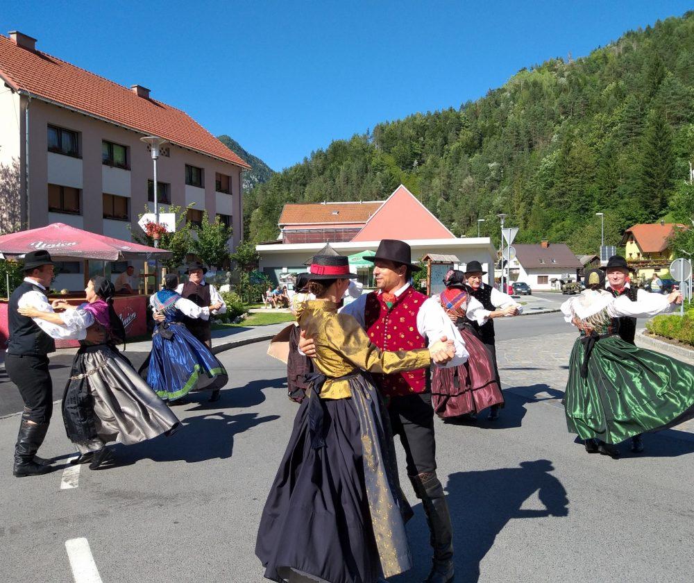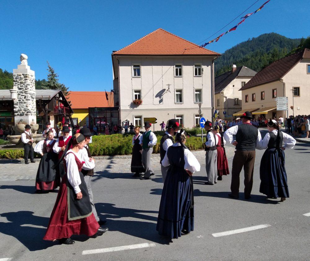 Tako je v Črni pelo, igralo in plesalo približno 130 plesalk, plesalcev in muzikantov, ki so množici obiskovalcev najprej popestrili nedeljsko popoldne s povorko in krajšimi predstavitvami na vasi oziroma v centru Črne, piko na i pa je dodalo tudi sončno vreme.