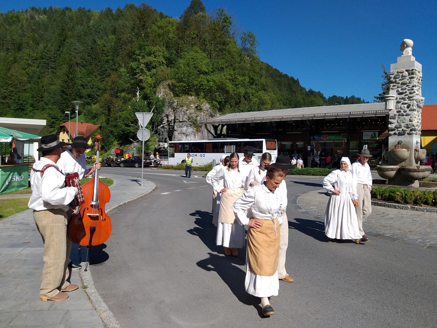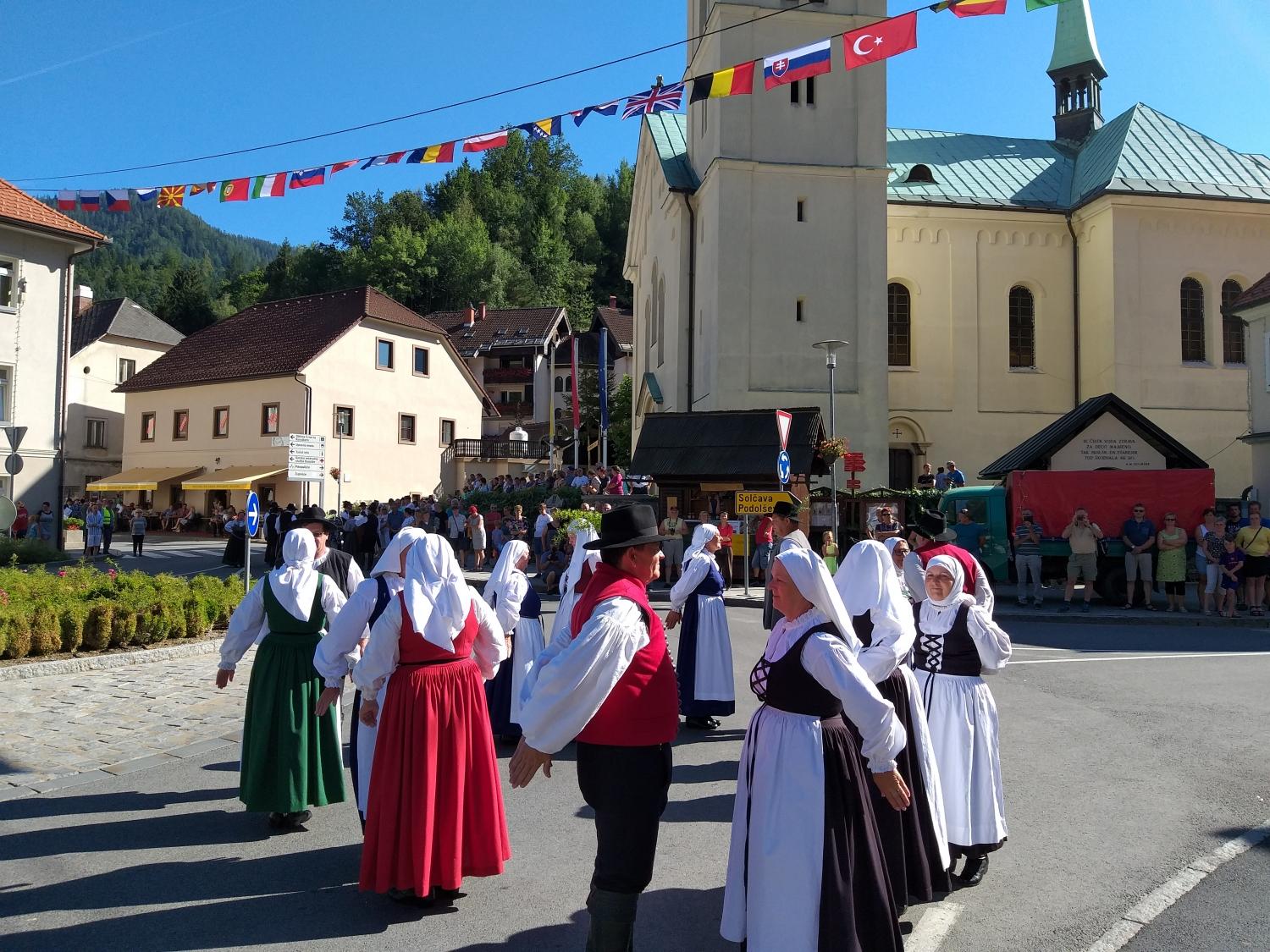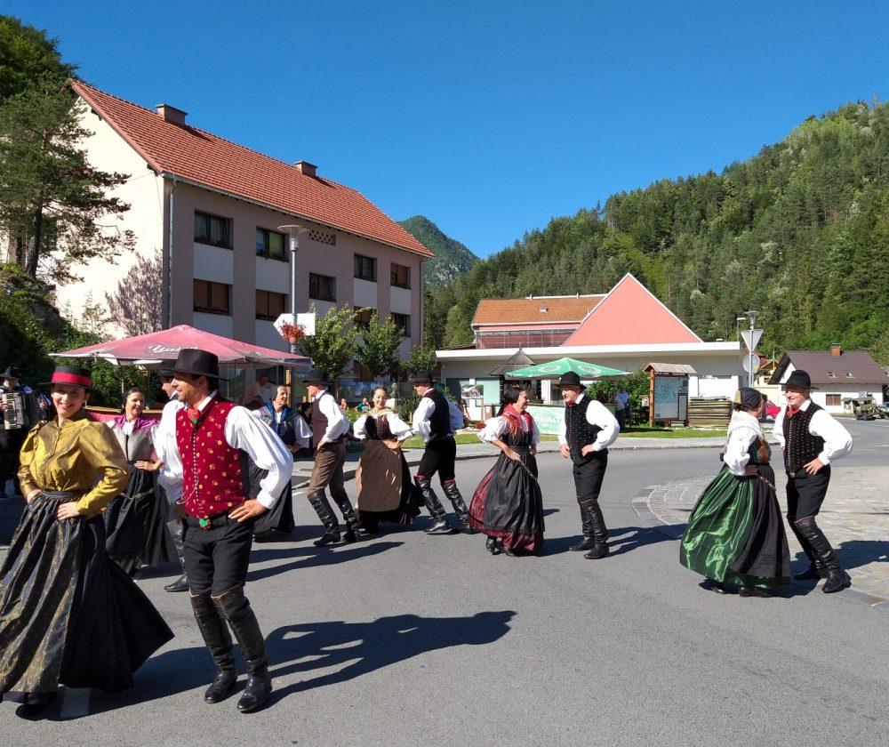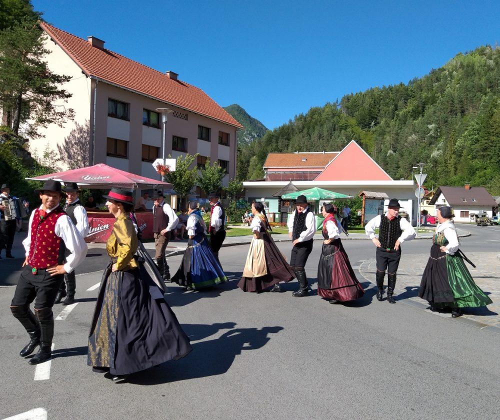 Tako je v Črni pelo, igralo in plesalo približno 130 plesalk, plesalcev in muzikantov, ki so množici obiskovalcev najprej popestrili nedeljsko popoldne s povorko in krajšimi predstavitvami na vasi oziroma v centru Črne, piko na i pa je dodalo tudi sončno vreme.