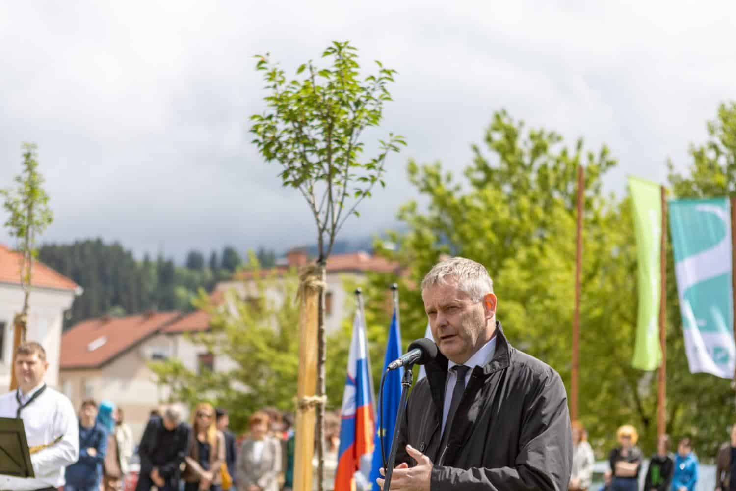 FOTOGALERIJA - Tako so ob kulturnem domu posadili japonske češnje