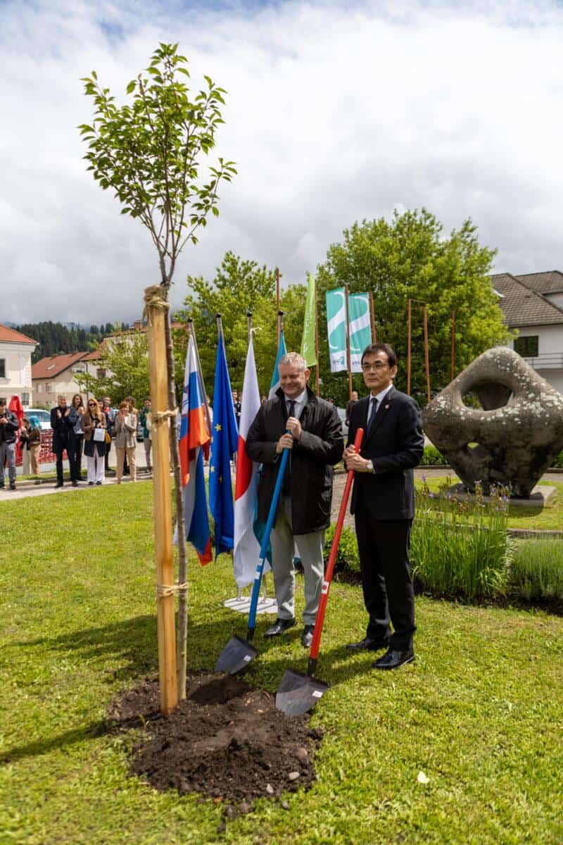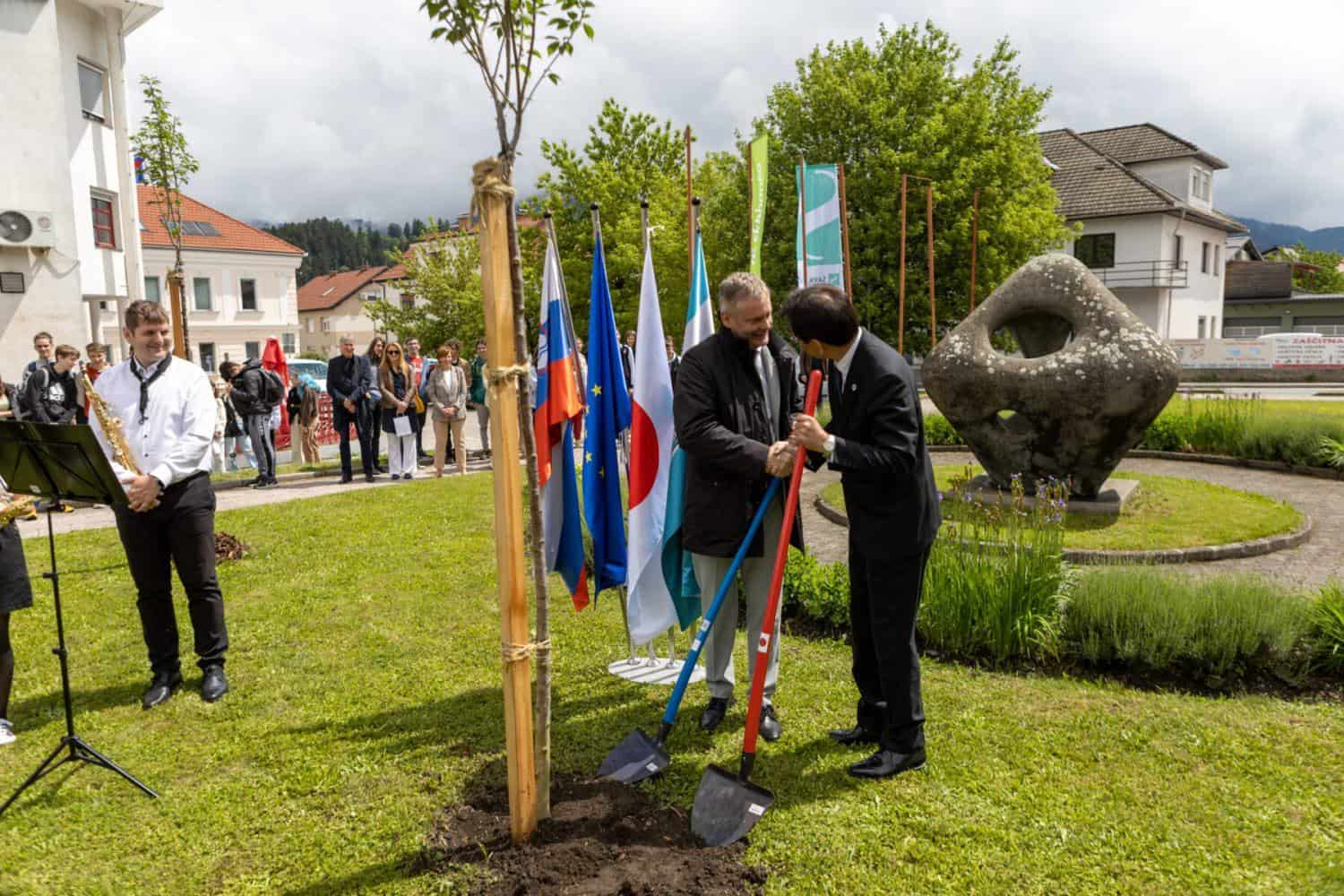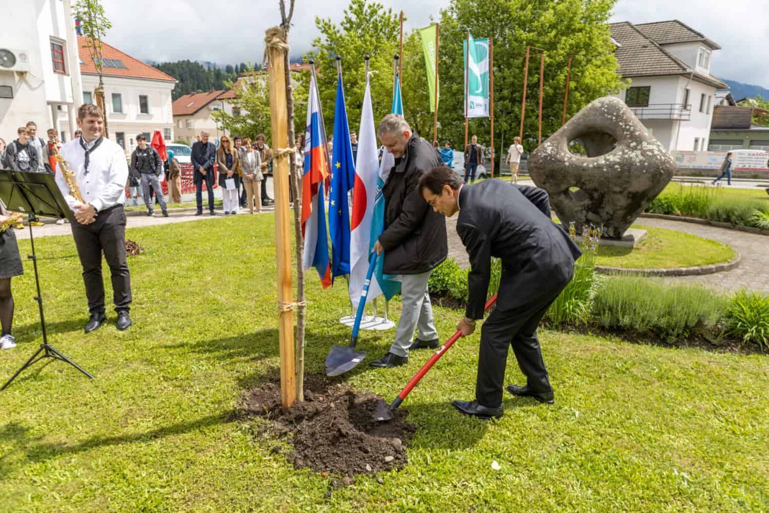 Po projekciji filma sta japonski veleposlanik v Sloveniji Hirumichi Matsushima in slovenjgraški župan Tilen Klugler ob kulturnem domu zasadila češnje v spomin na 30-letnico vzpostavitve diplomatskih odnosov med Japonsko in Slovenijo.