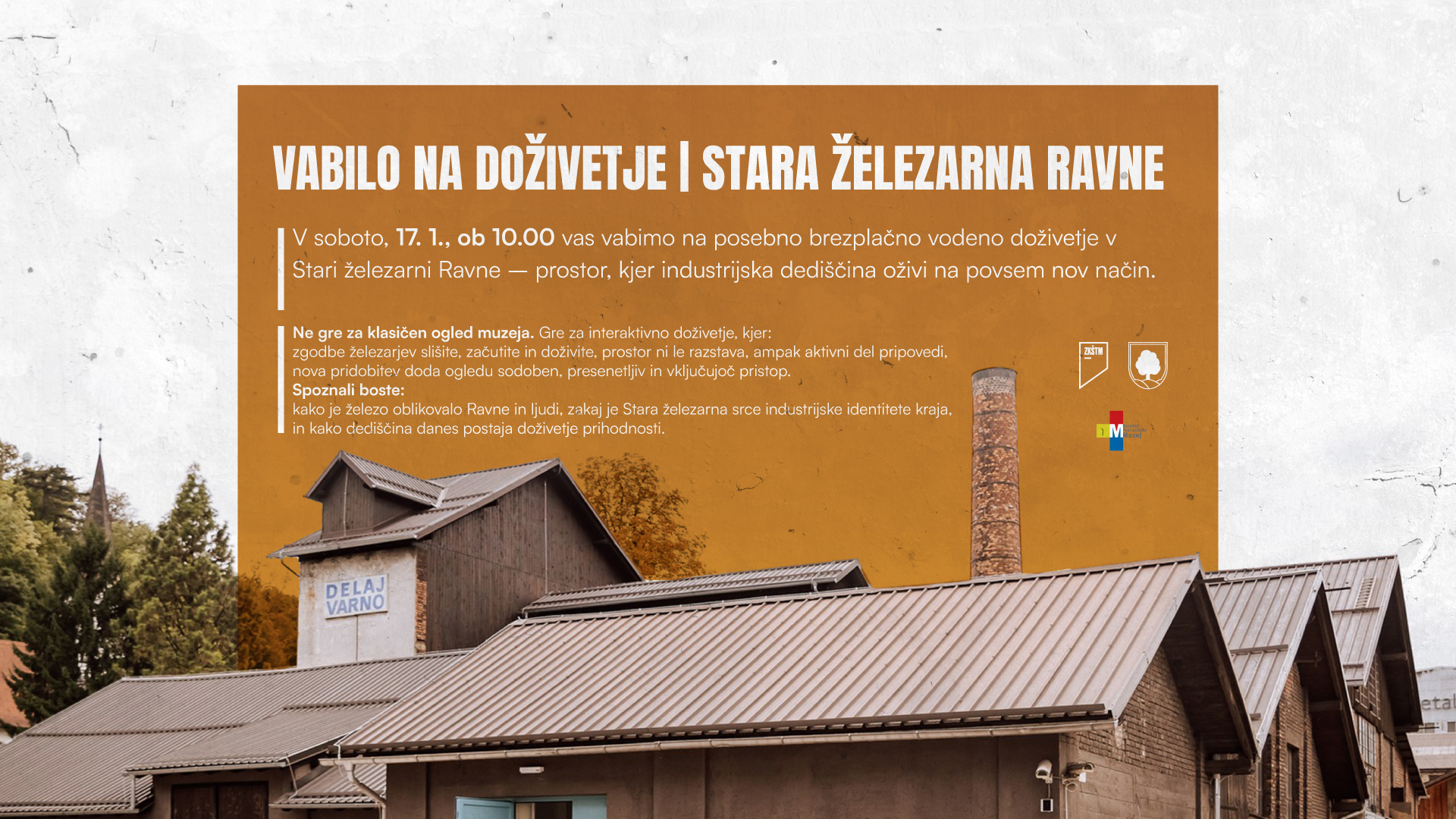 Zavod za kulturo, šport, turizem in mladinske dejavnosti ZKŠTM Ravne, v sodelovanju s Koroškim pokrajinskim muzejem vabi na brezplačno vodeno doživetje v Stari železarni Ravne – prostoru, kjer industrijska dediščina oživi na povsem nov, sodoben in zelo doživljajski način. To ni klasičen ogled muzeja.