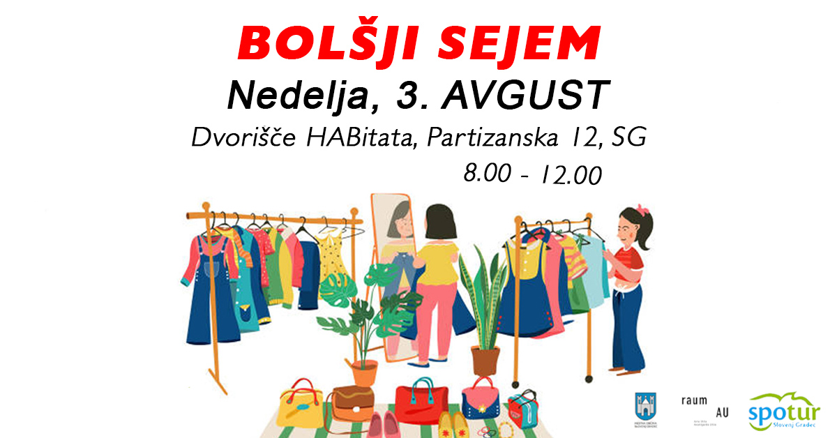 Na sejmu boste našli pester nabor rabljenih predmetov – od oblačil, knjig in igrač do gospodinjskih pripomočkov ipd. Vsak izmed njih nosi svojo zgodbo in čaka na novega lastnika. Če želite tudi sami prodajati, ste vabljeni, da pridite malo pred začetkom, saj prijave niso potrebne.