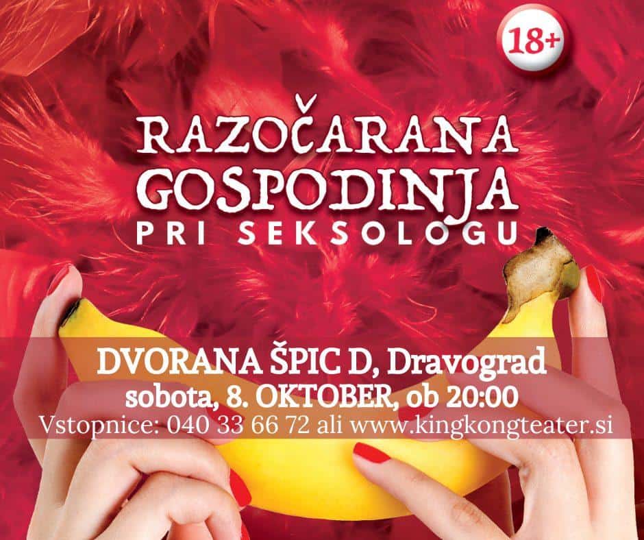 Glede na to, da so želje javnosti na Koroškem velike, bo gledališki hit »Razočarana gospodinja pri seksologu« gostoval v Dvorani ŠPIC D v Dravogradu. Predstava bo potekala v soboto, 8. oktobra ob 20h.