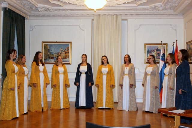 Koncert je potekal v dveh delih. V prvem delu smo lahko prisluhnili angleškim renesančnim madrigalom, v drugem delu pa slovenski ljudski pesmi.