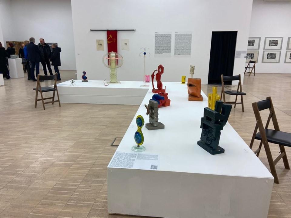 Ob 80-letnici Pina Poggija so danes v Koroški galeriji likovnih umetnosti odprli razstavo z naslovom Arte Utile po istoimenskem gibanju, ki ga je zasnoval umetnik.