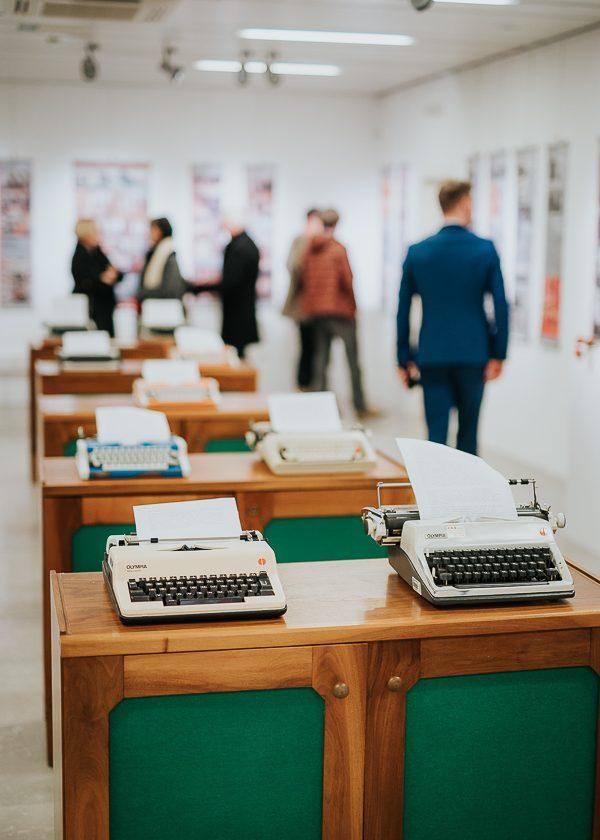 Večina besedil, ki jih vidimo na razstavnih panojih v tipkarskem slogu je dobesedno povzeta iz Kronike Koroške osrednje knjižnice, ki jo je ob svojem odhodu na podlagi dokumentov in po spominu zapisal ravnatelj Janez Mrdavšič ter kasneje, ob 50-letnici knjižnice, dopolnila ravnateljica in direktorica mag. Majda Kotnik-Verčko.