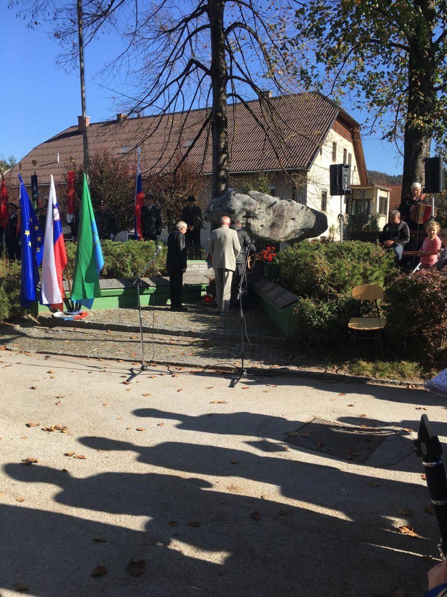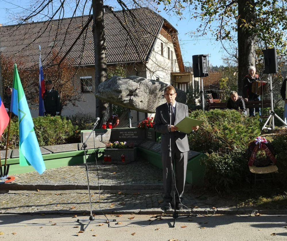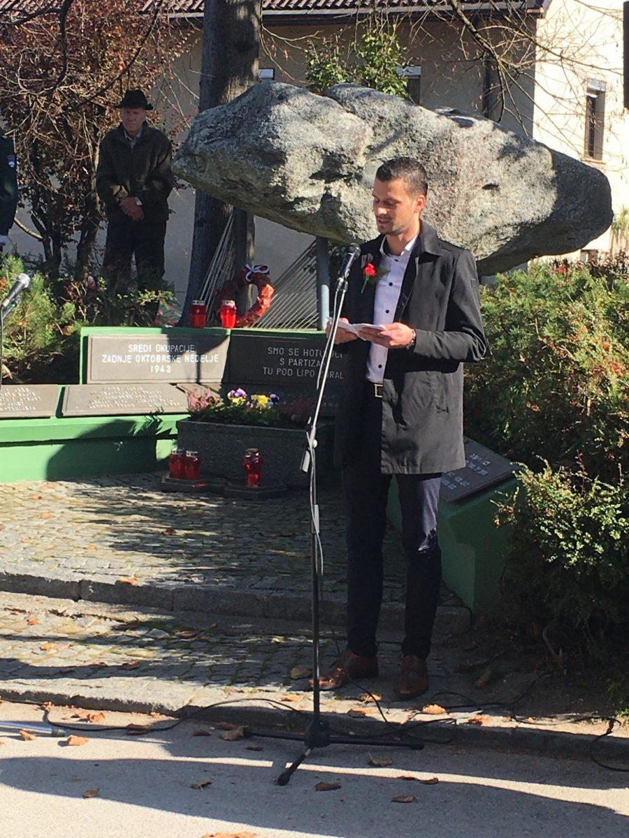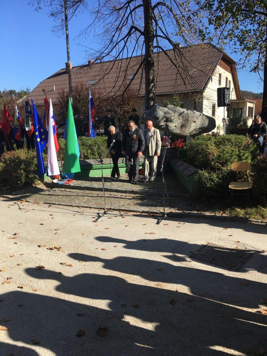 Predsednik ZB za vrednote NOB Mežiške doline, gospod Stanislav Ovnič, ter predsednika Združenje borcev za vrednote NOB, občinska organizacija Ravne na Koroškem Maksimiljan Večko ter predstavnik veteranov Zdravko Močilnik so slavnostno položili venec k spomeniku padlim za svobodo.