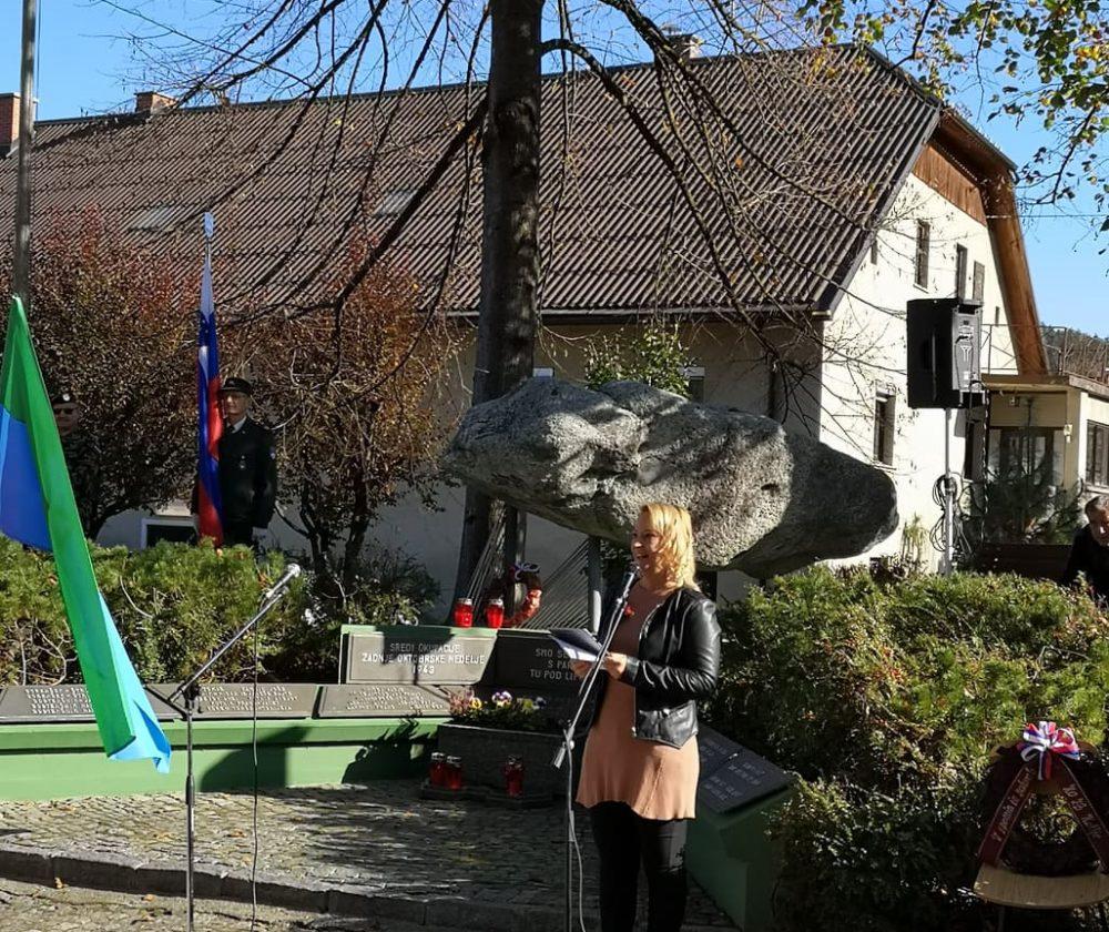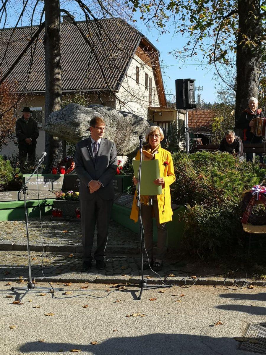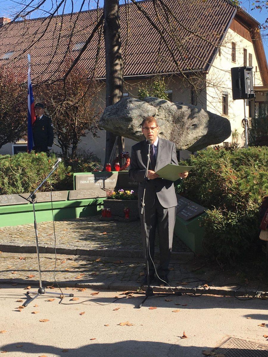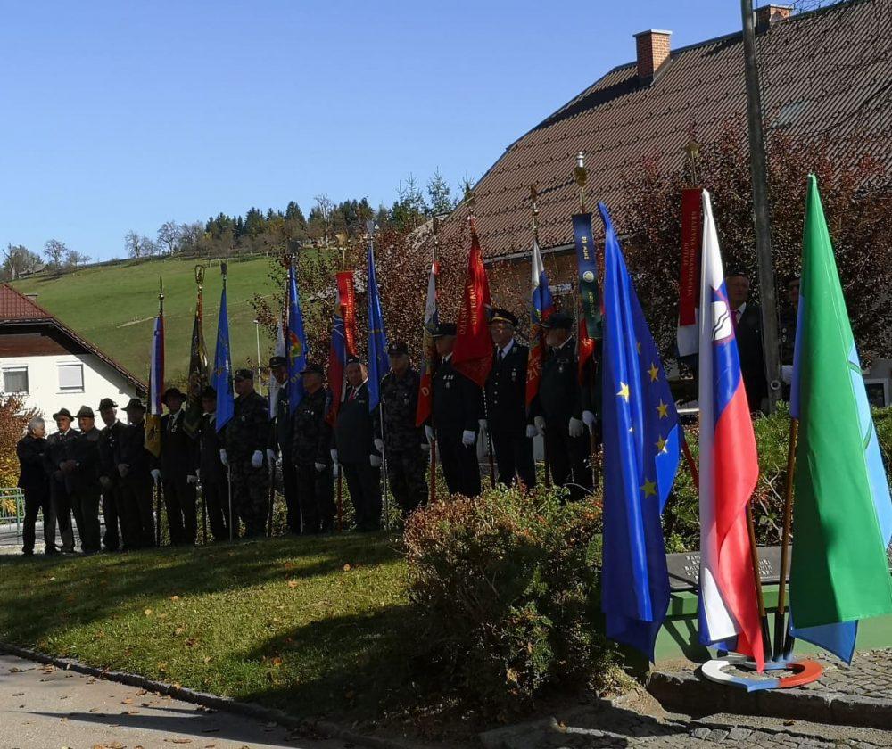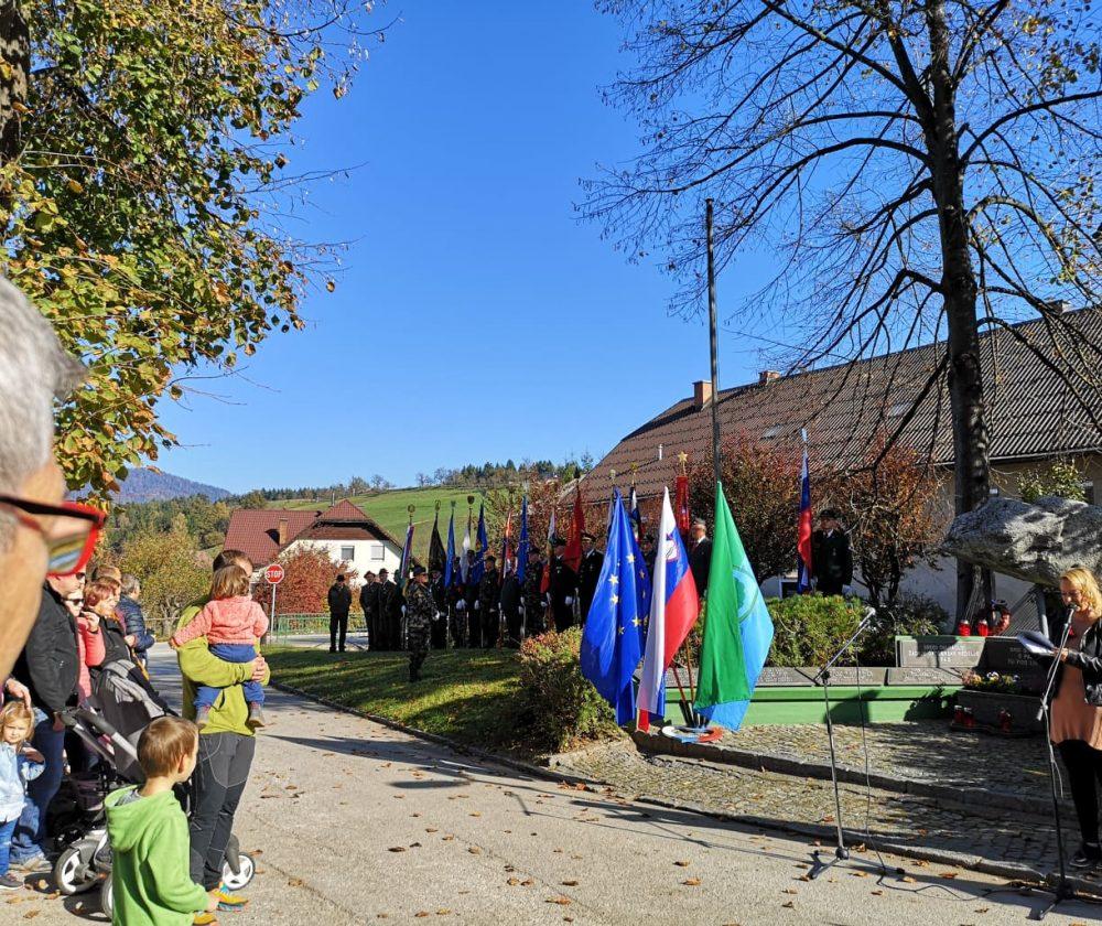 Predsednik ZB za vrednote NOB Mežiške doline, gospod Stanislav Ovnič, ter predsednika Združenje borcev za vrednote NOB, občinska organizacija Ravne na Koroškem Maksimiljan Večko ter predstavnik veteranov Zdravko Močilnik so slavnostno položili venec k spomeniku padlim za svobodo.