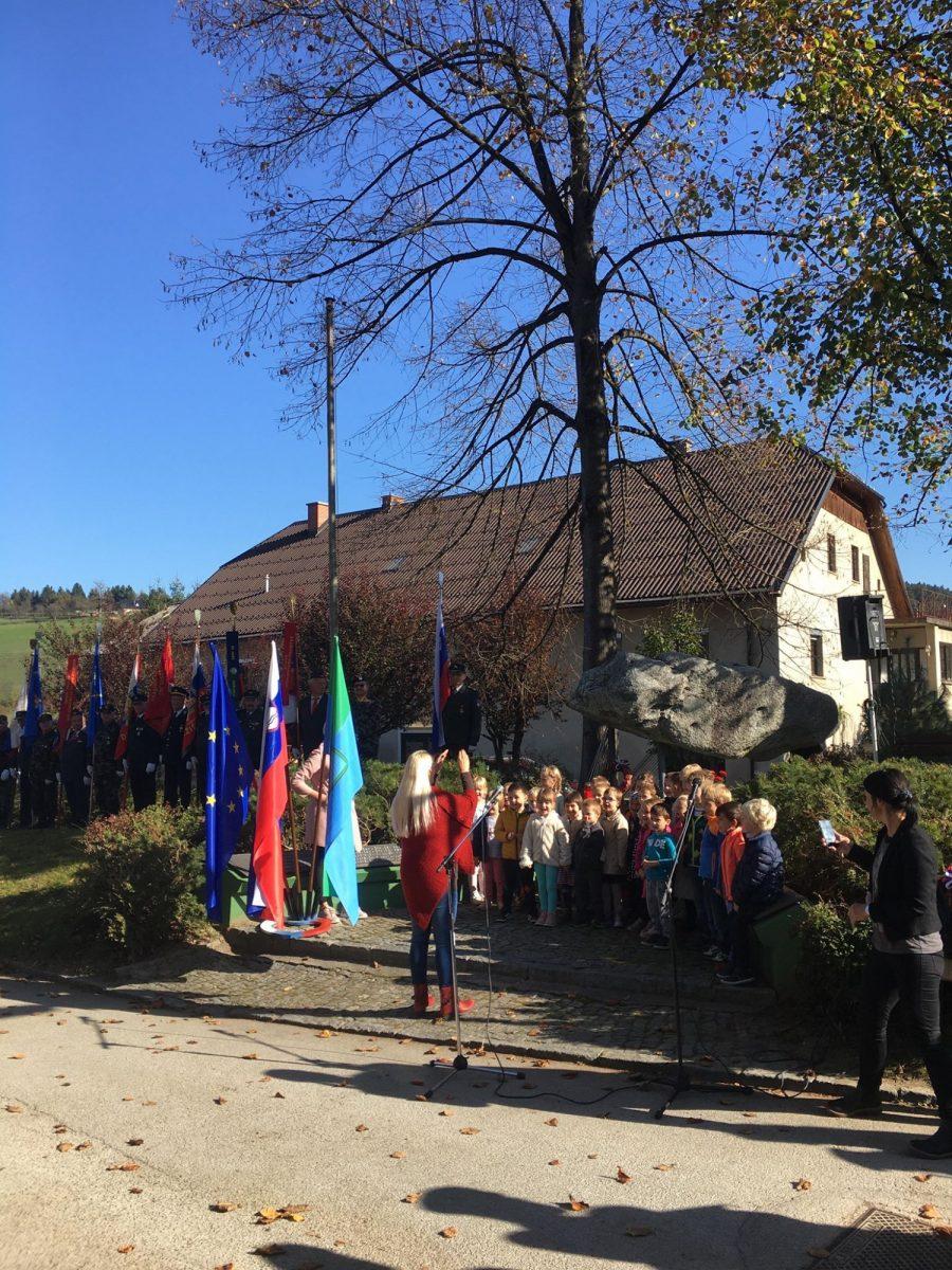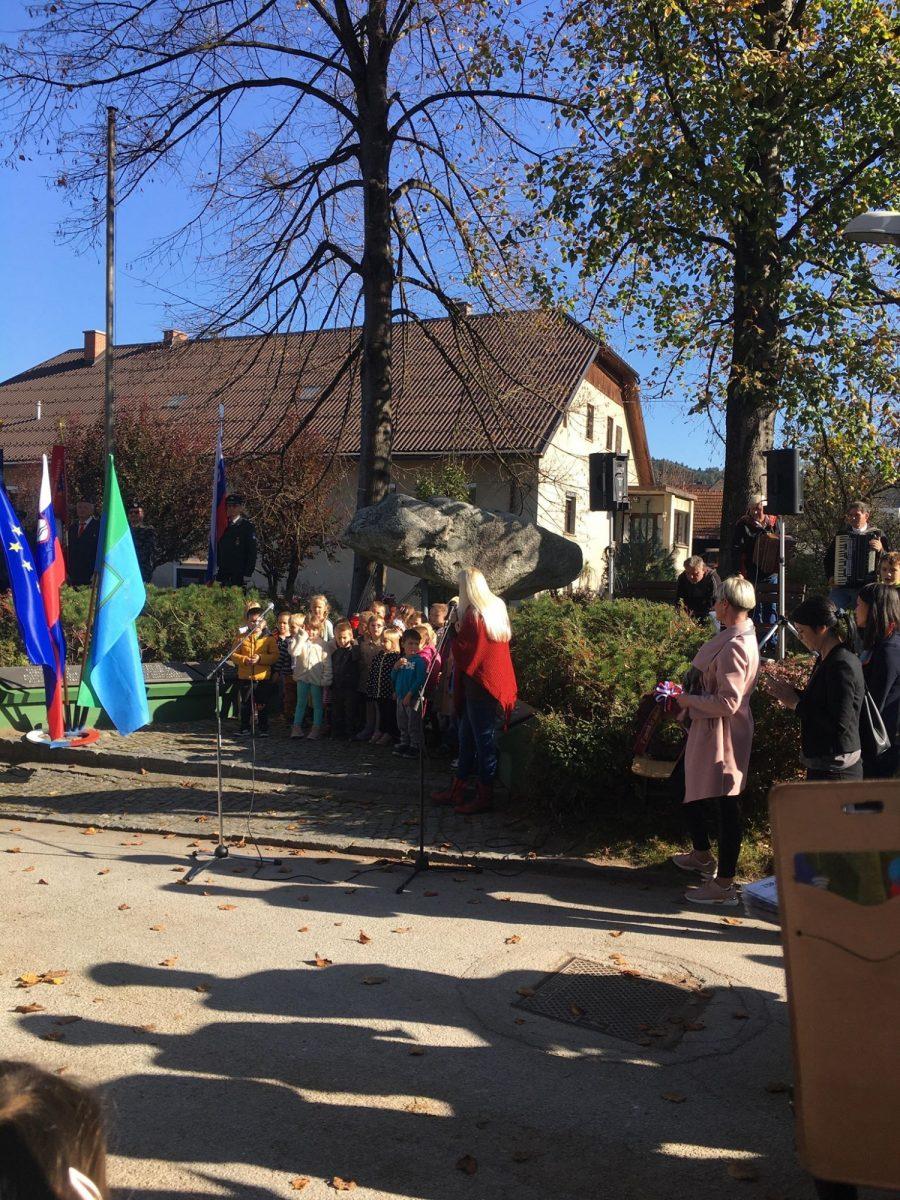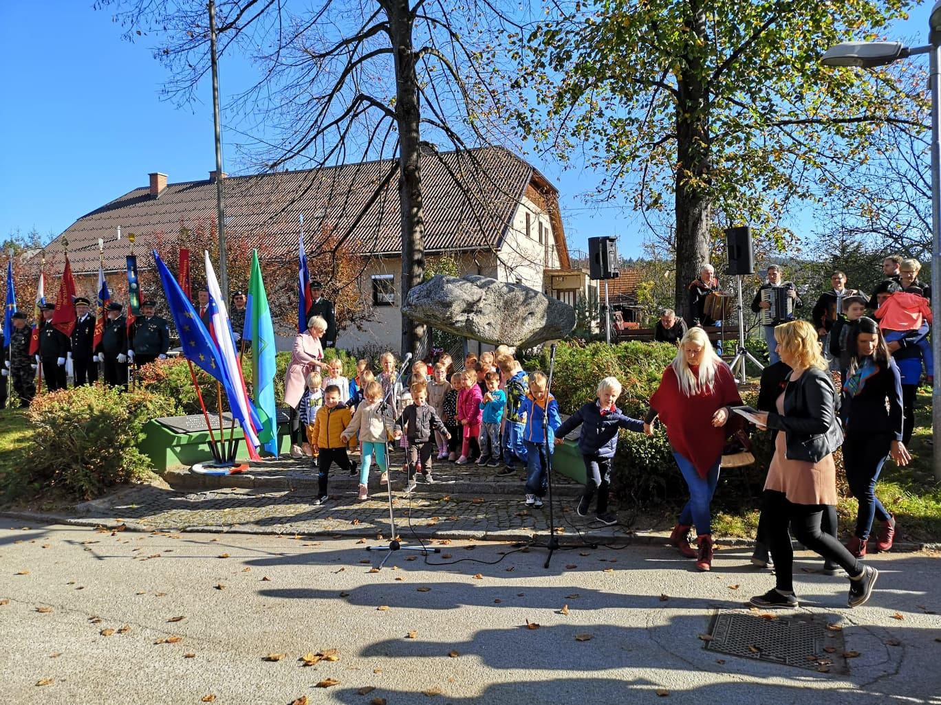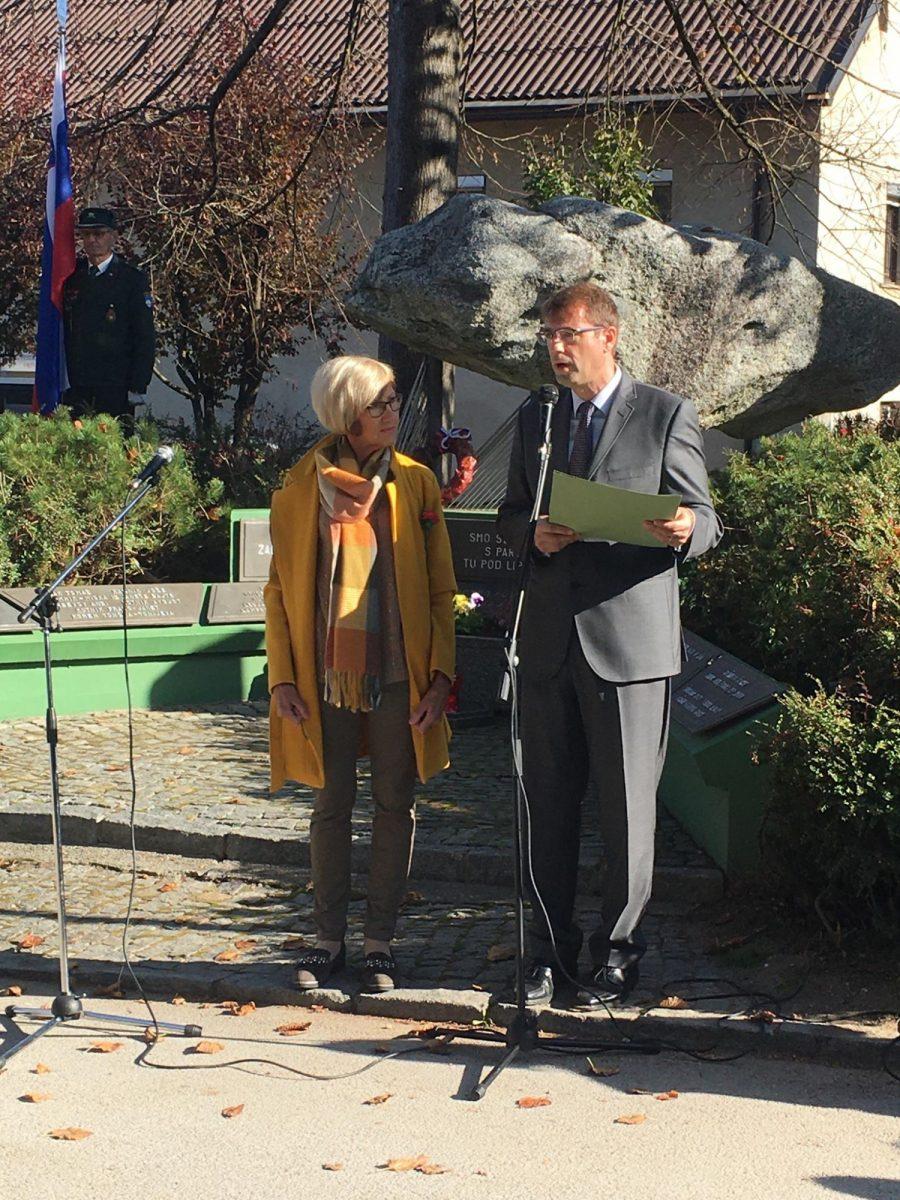 Predsednik ZB za vrednote NOB Mežiške doline, gospod Stanislav Ovnič, ter predsednika Združenje borcev za vrednote NOB, občinska organizacija Ravne na Koroškem Maksimiljan Večko ter predstavnik veteranov Zdravko Močilnik so slavnostno položili venec k spomeniku padlim za svobodo.
