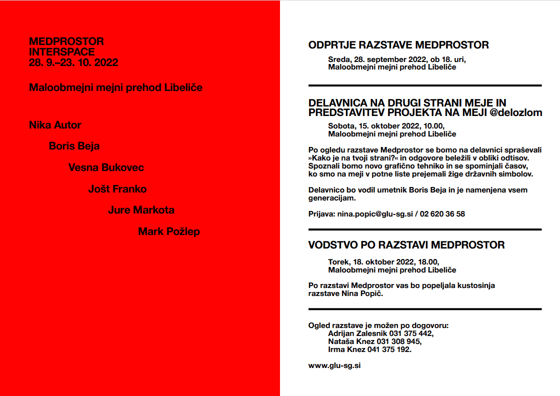 Razstava Medprostor je zasnovana ob stoti obletnici priključitve Libelič k matični domovini. Izvirajoč iz premisleka o mejah, ki zaznamujejo geopolitično območje Slovenije in konkretno meje med Slovenijo in Avstrijo, se ukvarjajo s širšim konceptom in pojavom meja nasploh.