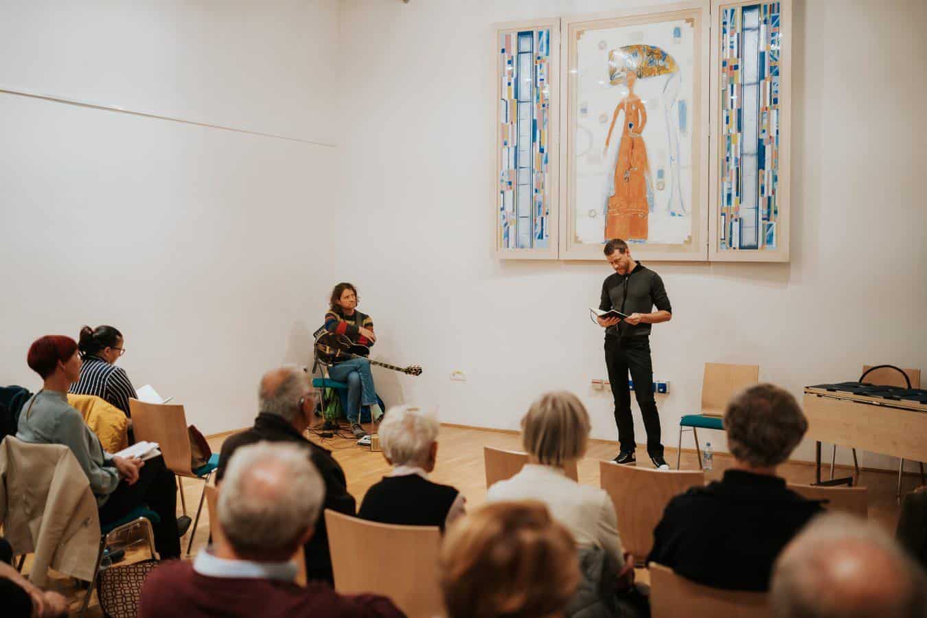 Topel, harmoničen literarni večer so soustvarili mežiški župan Dušan Krebel, pesnik Gašper Bivšek, akademsko izobražen kitarist Andrej Ofak in Radmance (Zlatka Strgar, Petra Lesjak Tušek, Ana Pisar Čivčič, Barbara Žvirc in Danica Hudrap). Bil je poseben dan za revitalizacijo Voglove poezije.