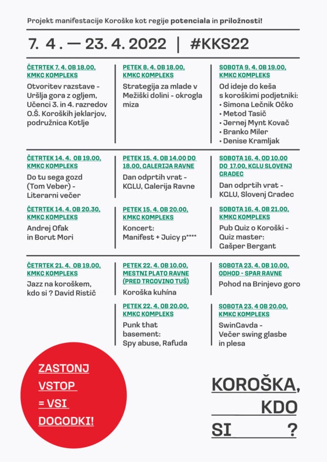 - danes pa se bo odvil dogodek Od ideje do keša s koroškimi podjetniki: Simona Lečnik Očko, Metod Tasič, Jernej Mynt Kovač, Branko Miler, Denise Kramljak