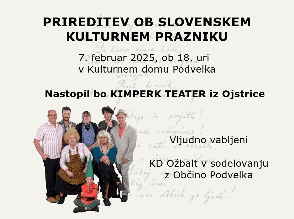 V Občini Podvelka bodo tudi letos obeležili slovenski kulturni praznik s posebno prireditvijo, ki bo potekala v petek, 7. februarja 2025, ob 18. uri v Kulturnem domu Podvelka.