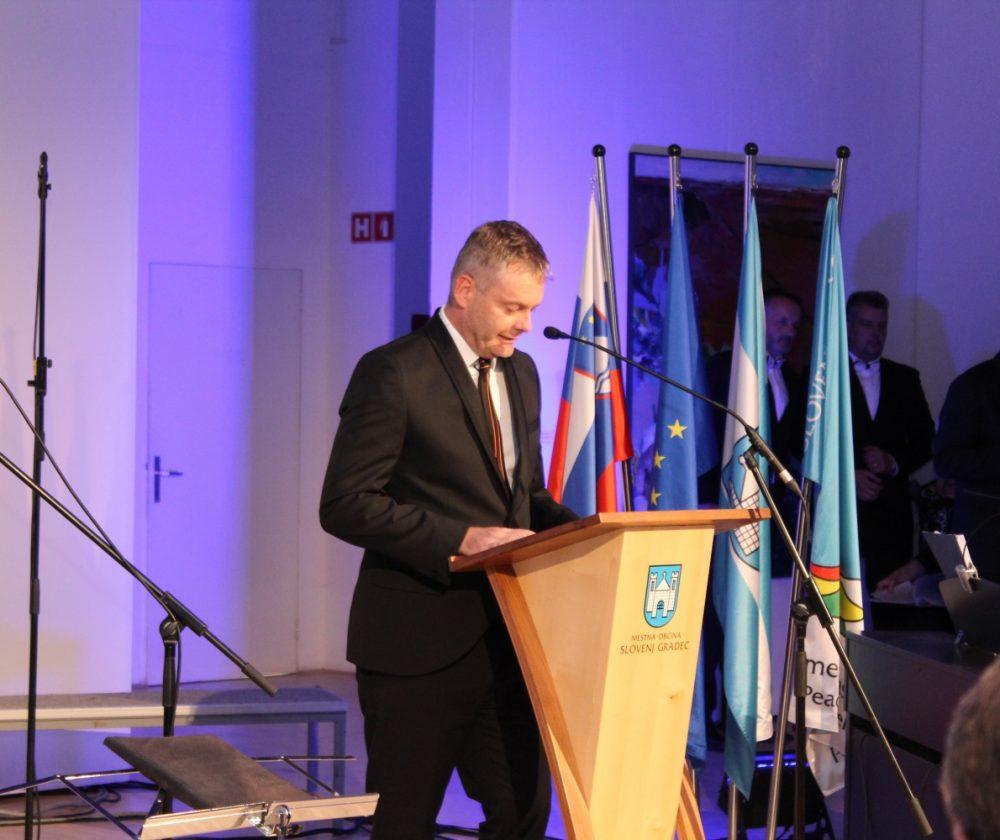 VIDEO: Župan Mestne občine Slovenj Gradec Tilen Klugler: "Ponosni smo, da je Slovenj Gradec že trideset let včlanjen v asociacijo mest Glasnikov miru."