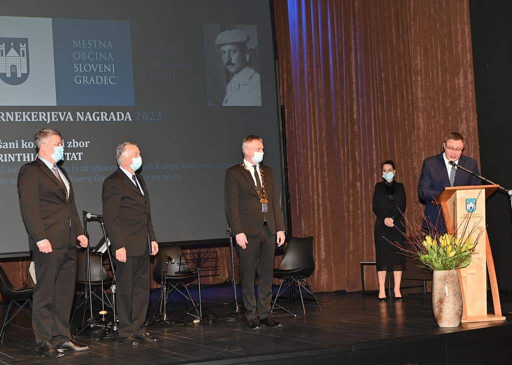 - mešani komorni zbor CARINTHIA CANTAT, ob 25-letnici delovanja in za izjemen prispevek k dvigu kakovosti zborovske glasbe ter uveljavitev Slovenj Gradca in Koroške doma in na tujem.