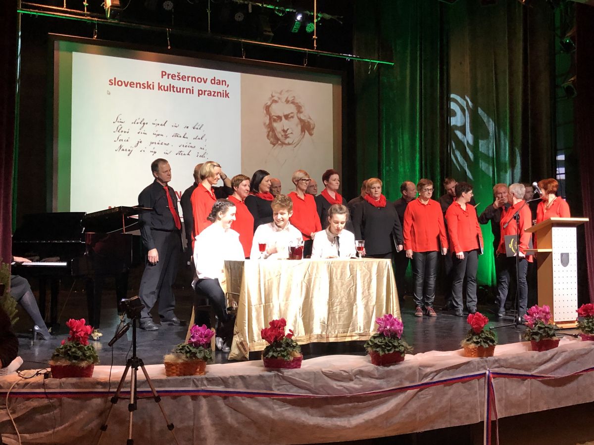 Svoja mesta v dvorani so ponovno zavzeli dijaki ravenske gimnazije ter zrecitirali še nekaj Prešernovih pesmi, Nuša Perenda in Tinkara Lednik sta ob spremljavi Tevža Jevšnikarja in Jovana Savića za zaključek zapeli še Kreslinovo O, Vrbo.