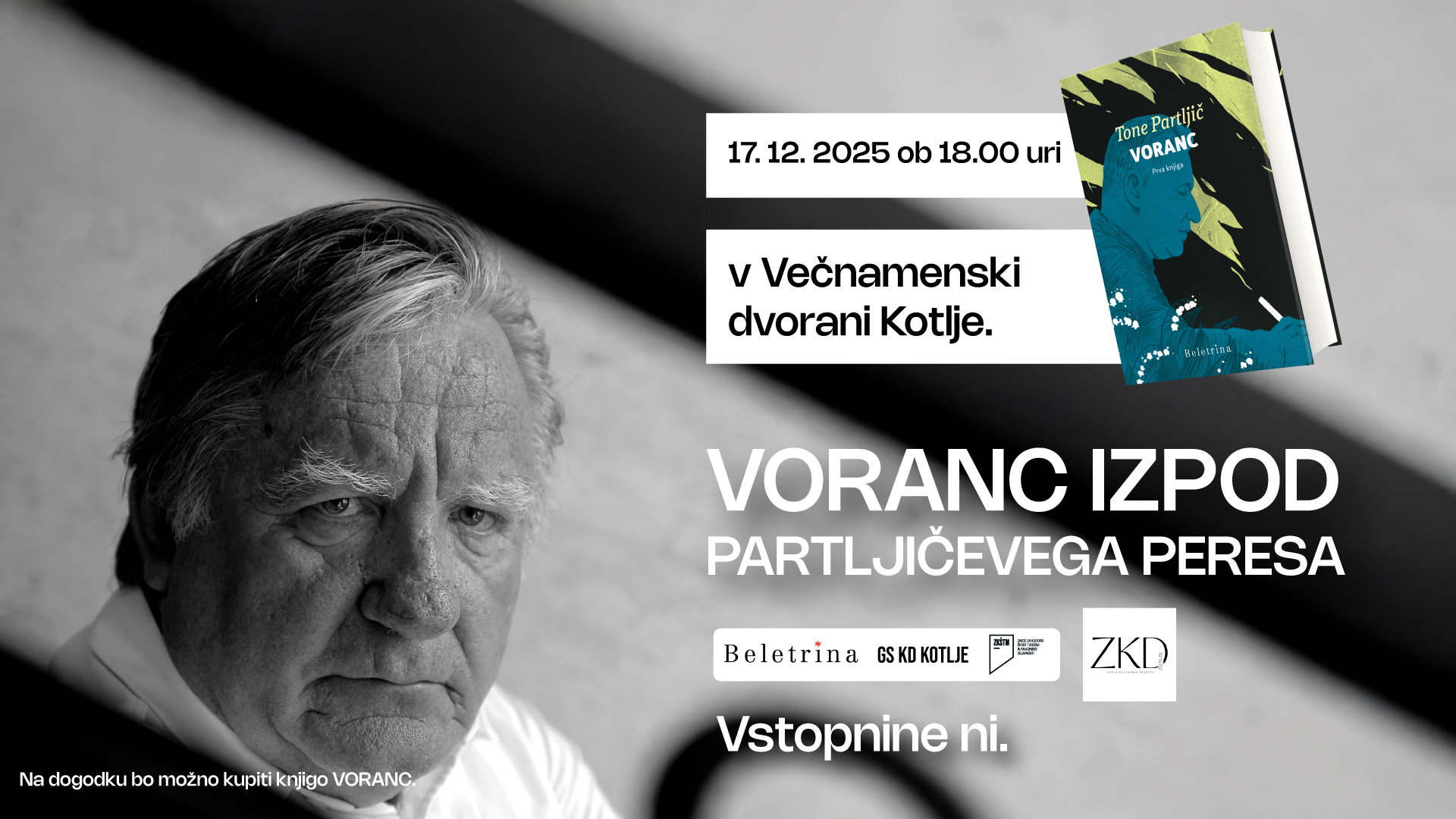 Literarni večer v Kotljah bo postregel z edinstvenim vpogledom v ustvarjalni proces Toneta Partljiča in v življenje enega najpomembnejših slovenskih pisateljev 20. stoletja, Lovra Kuharja - Prežihovega Voranca. Knjiga je prežeta z zgodovino, socialnimi problemi in politiko, rdeča nit romana pa je povezava med Vorancem in Marijo, njuna ljubezenska zgodba.