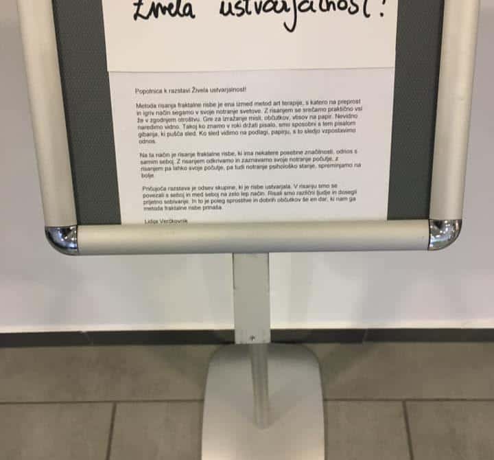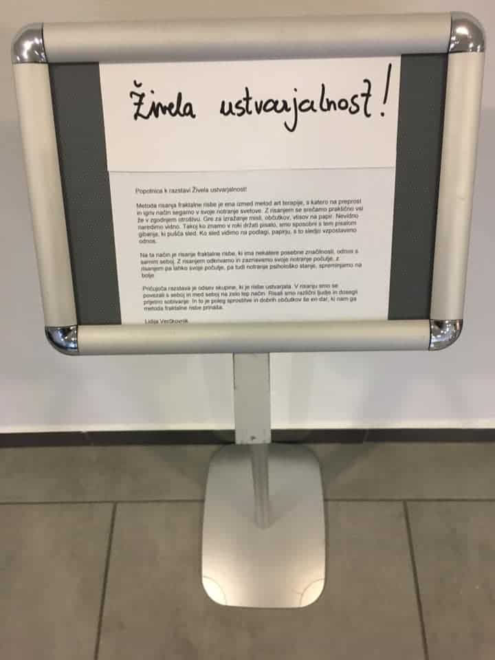 Kot zadnja v nizu letošnje izvedbe pa je svojo fascinacijo predstavila grafična oblikovalka Lidija Verčkovnik, ki je v sklopu sodelovanja predstavila metodo fraktalna risba, možnost samopomoči z umetnostjo in njeno uporabo v vsakdanjem življenju. Ta, kot pove ustvarjalka, pripomore k harmonizaciji osebnih odnosov, pri razvijanju potencialov in pri osvobajanju, v najširšem pomenu.