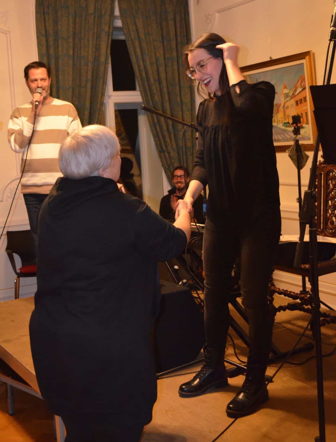 Na sobotnem literarnem večeru so se s svojo poezijo predstavili udeleženci 24. Pesniške olimpijade ter 8 predstavnikov mlade pesniške generacije, nagrajencev 13. Mlade pesniške olimpijade: Brina Kolar, Maks Horvat, Atena Pavlinič, Ajda Poljanec Purg, Mina Poljšak, Hana Merica, Neli Prater in Jera Terpotec. Za glasbeno poslastico je poskrbela koroška skupina Teater na gradu, ki jo sestavljajo Lucija Mirkac, Primož Štern in Martin Blodnik, ki je vse prisotne pobožala z uglasbeno Lucijino poezijo. Vsem nastopajočim in prisotnima mentoricama sta nagrade in priznanja podelila Robert Preglau, koordinator obmožne izpostave JSKD v Dravogradu in Barbara Žvirc, vodja projekta.