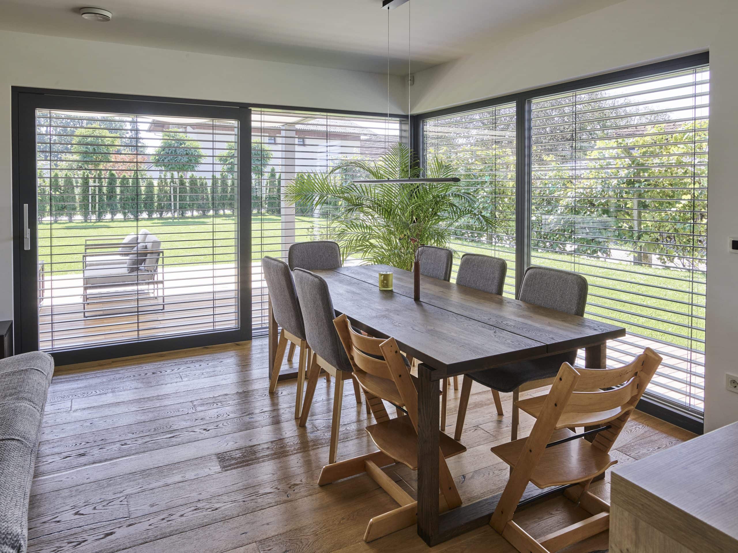 Družina je v svoj novi dom vnesla veliko topline in igrivosti, stavila pa je predvsem na naravne materiale. Ti interier povezujejo s prekrasno zunanjo ureditvijo, na kateri se ustavljajo pogledi iz prav vseh prostorov doma.