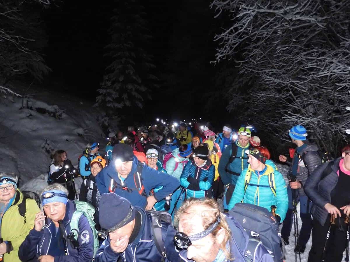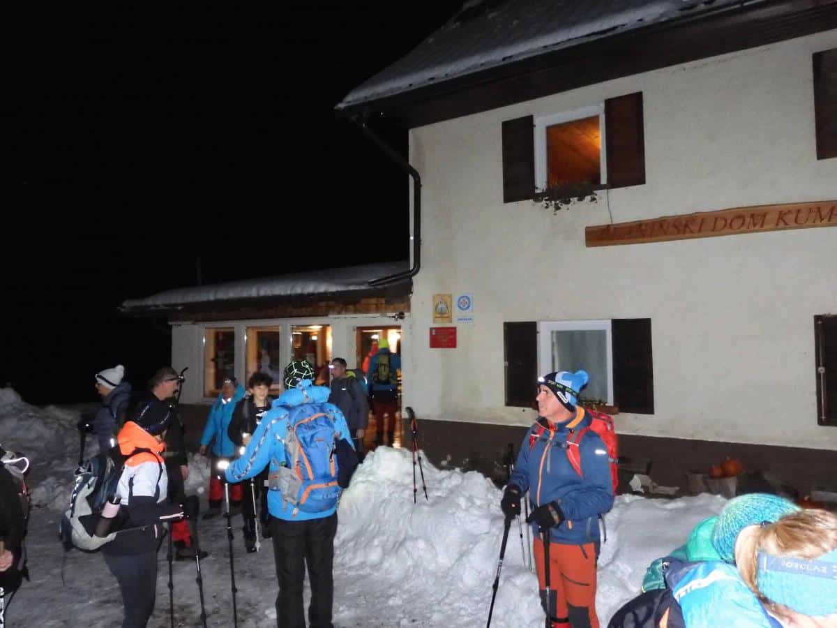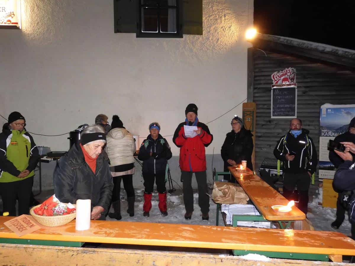 Dobro uro hoje je do Kumra, kjer jih je čakal topel čaj, zakuhano vino in malica. Po krajšem postanku so se podali na najlepši del te poti, ki poteka že v Avstriji in preko prelaza Luže v krasni zimski idili ob soju lune in s sveže zapadlim pršičem kmalu prispeli do cerkvice Treh ver, za srečo pozvonili in le še nekaj ovinkov je bilo do kmetije Čemer na avstrijski strani. Po krajšem postanku so se podali še na zadnji del poti, to je dobro uro dolg zelo strm spust v dolino Lepene. Prijetno utrujeni in zadovoljni so se pri kmetu Raztočniku (blizu Železne Kaple) posedli na avtobuse, ki so jih popeljali nazaj v Slovenijo.