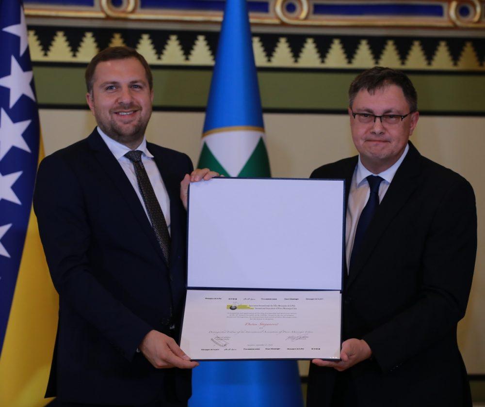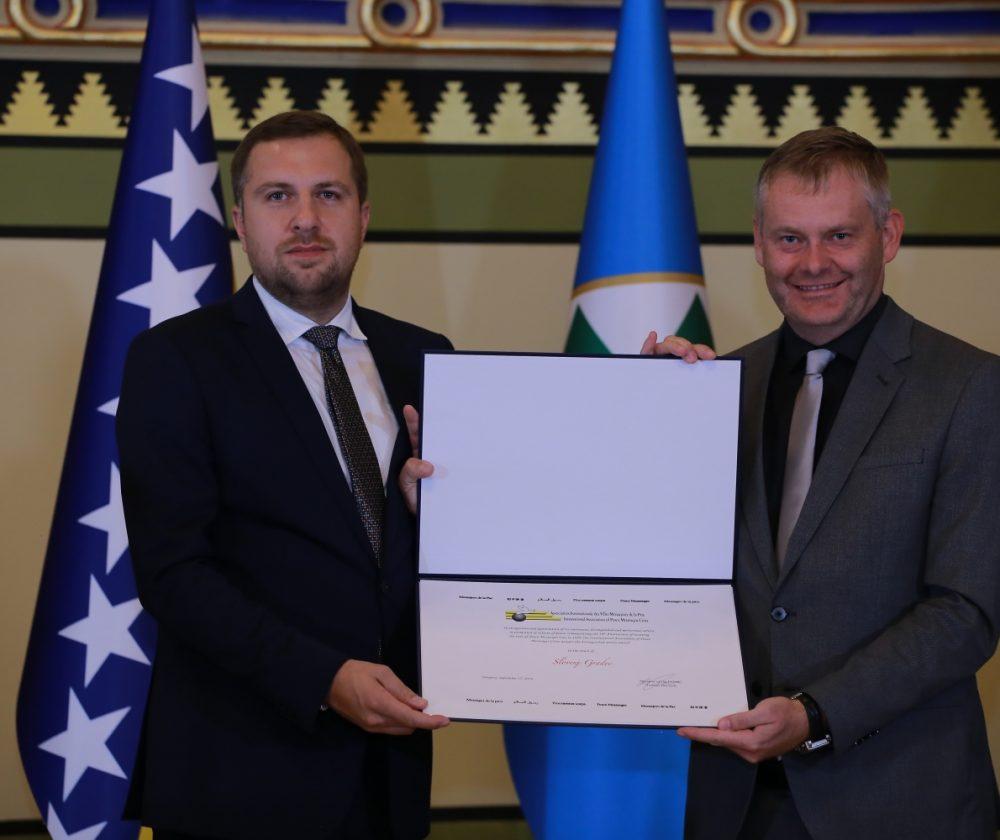 Slovenj Gradcu je bilo podeljeno posebno priznanje, v imenu Slovenj Gradca je ob 30. obletnici prejema naziva Glasnik miru in izjemne angažiranosti pri promociji združenja mest ter kulture miru na lokalnem, nacionalnem in mednarodnem področju priznanje iz rok sarajevskega župana, novoizvoljenega predsednika IAPMC, sprejel župan Tilen Klugler.