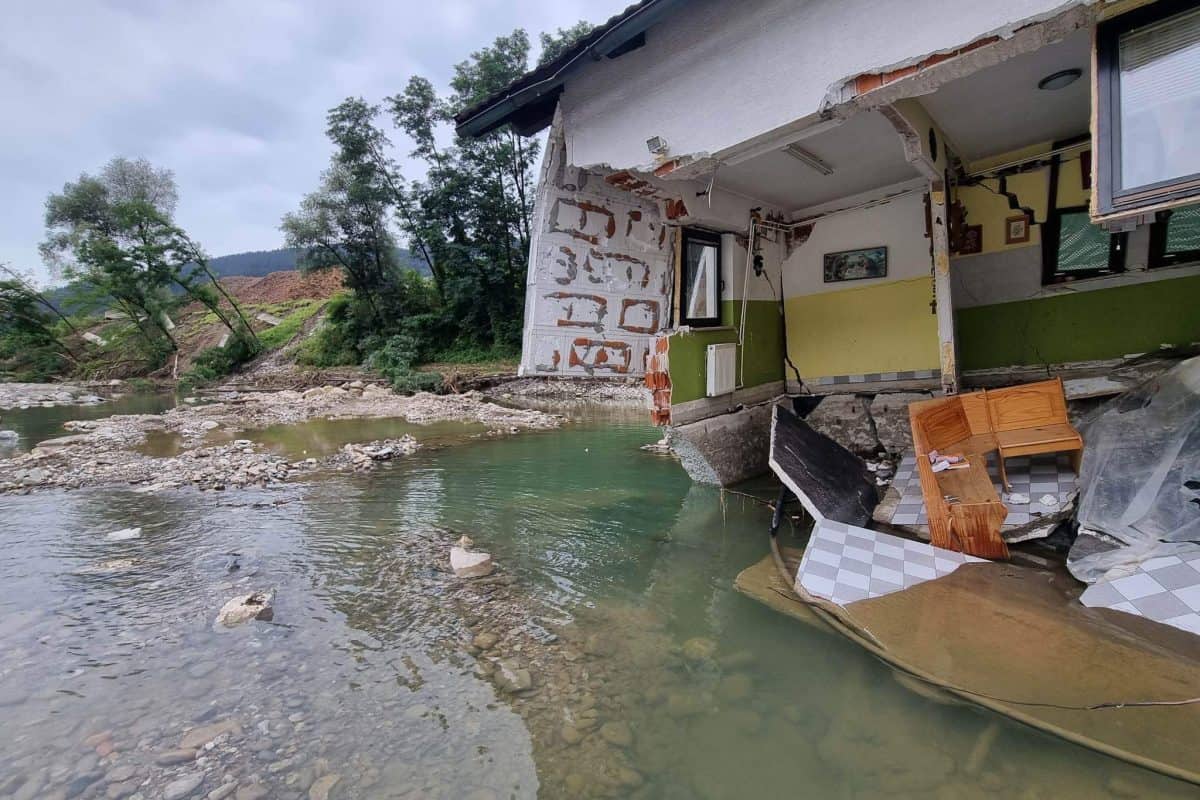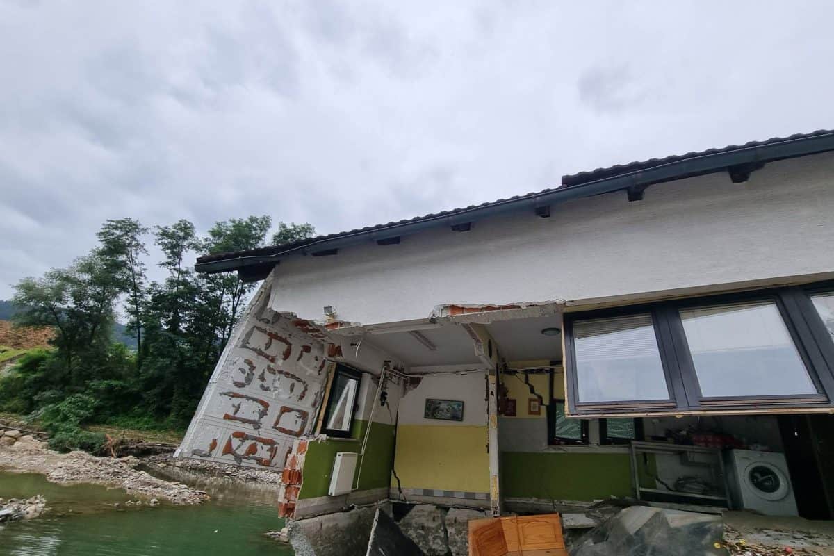 Voda in blato sta pri tem že povsem vdrla v hišo in uničila skoraj vse. Takrat pa se je najhuje pravzaprav šele pričelo: "Ko so začeli na levi strani hiše pokati zidove, sem bila ravno v kotu. Nato je počilo drugič. Ko sem se ozrla v kot proti stropu, sem videla velike razpoke. Takrat sem vedela, da gre zares. Samo zakričala sem: takoj vsi iz hiše!".