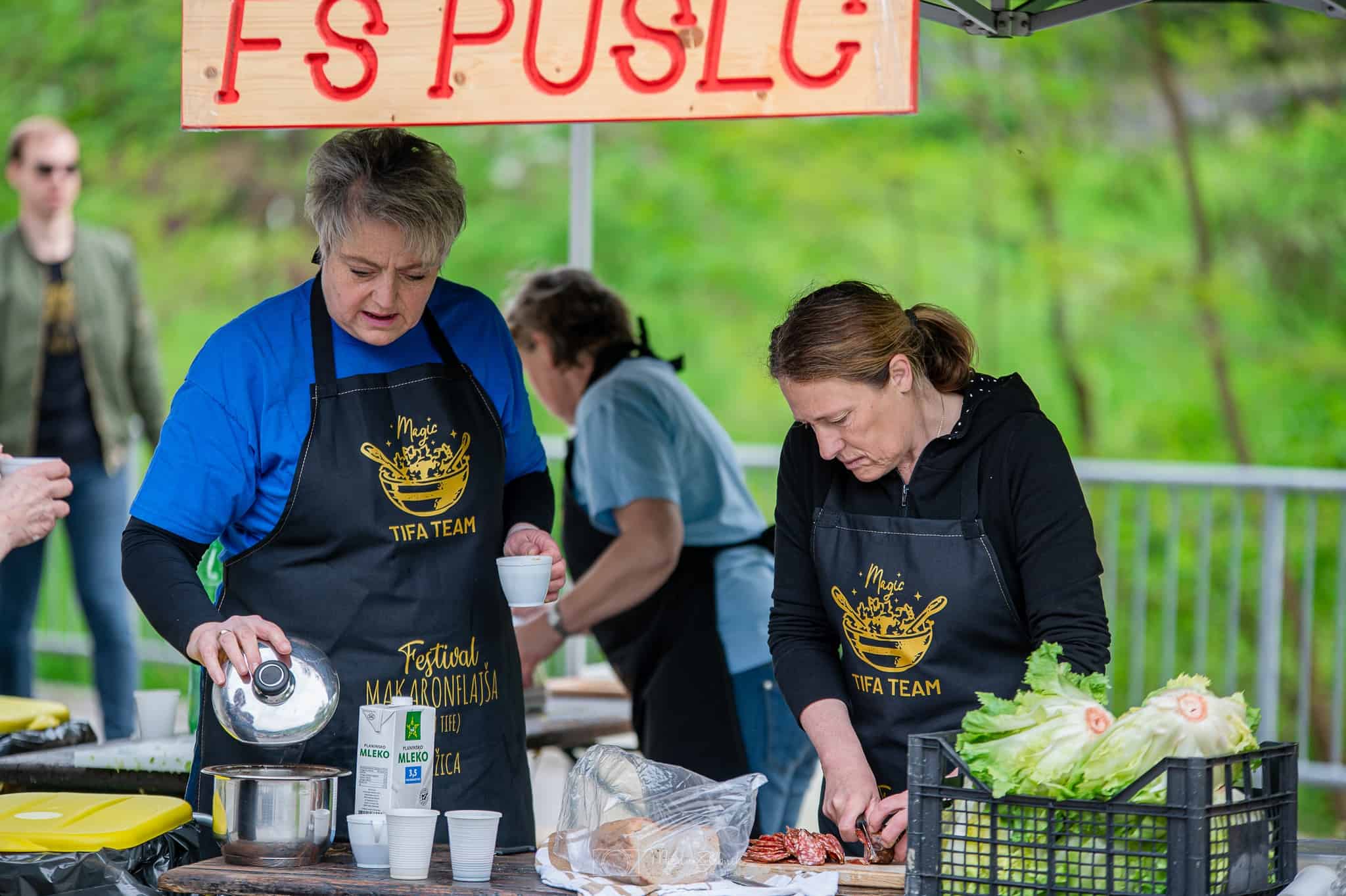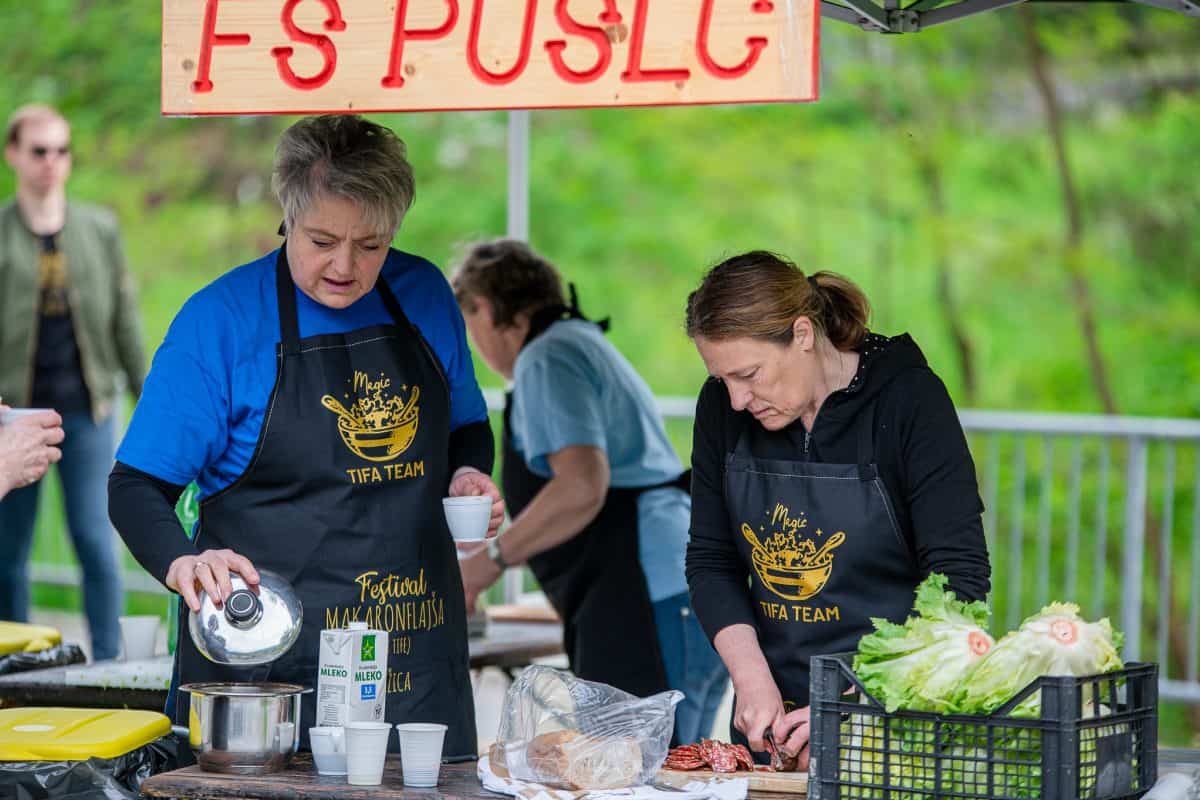 V Mežici je danes, 20. maja, od 9. ure zjutraj potekal že 4. Festival Makaronflajša (in tife). Ta poteka že vse od leta 2019. Seveda je bilo na platoju pred Narodnim domom Mežica tudi danes zelo veselo in dobro vzdušje. Temu je prispevalo 20 ekip, ki so po ustaljeni praksi kuhale vsaka svoj čudežni makaronflajš. Zraven so se obiskovalci lahko osvežili z r’pičevo tifo, ki jo je pripravljalo Folklorno društvo Pušeljc.