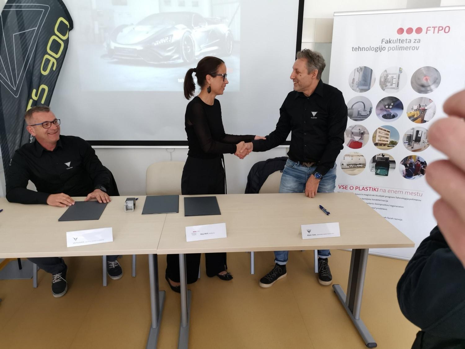 Danes, 8. 4. 2019, je na FakultetI za tehnologijo polimerov v okviru Kariernega centra FTPO potekala predstavitev podjetniške zgodbe in novega modela v Sloveniji izdelanega hiperavtomobila „ts 900h apex“ podjetja Tushek Supercars, ki je tudi razvojni partner Fakultete za tehnologijo polimerov, na kar so v Slovenj Gradcu še posebej ponosni. Danes so, v okviru predstavitve podjetja podpisali tudi pogodbo o sodelovanju, kar je po besedah direktorice Maje Mešl tudi izredno velika priložnost za fakulteto.