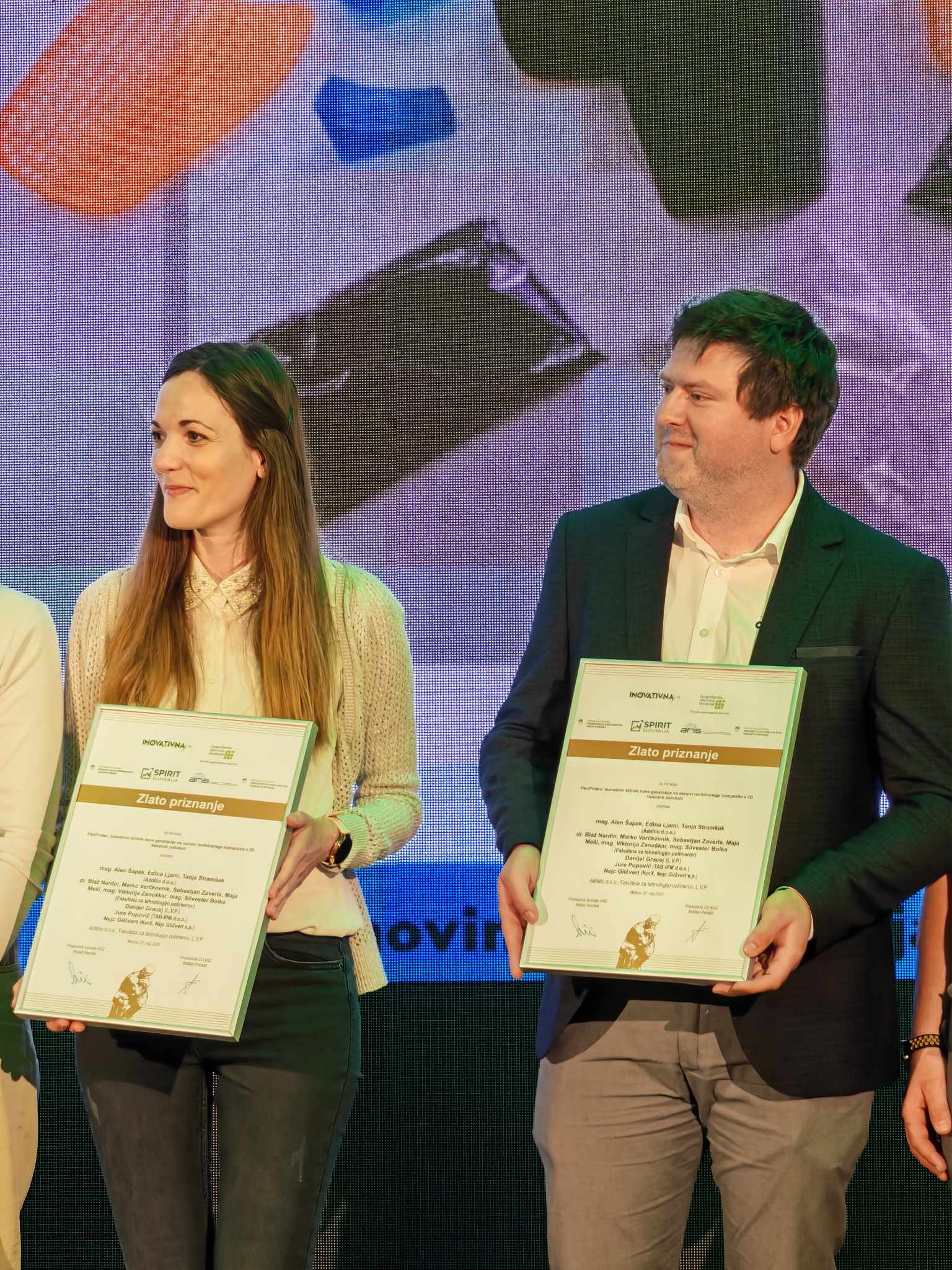 - FlexProtec, inovativni ščitnik nove generacije na osnovi recikliranega kompozita z 3D tiskanim polnilom. Prijavitelj: Additio d.o.o., Fakulteta za tehnologijo polimerov, L.V.P.