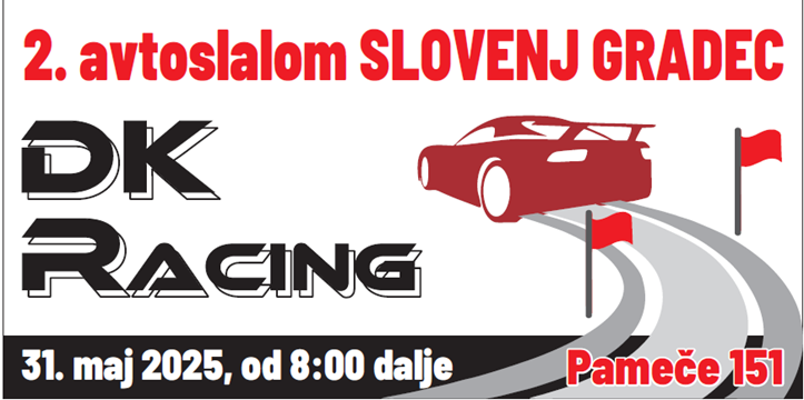Tudi letošnje letos bo v orgnaizaciji Športnega Društva DK Racing, AMD Ravne na Koroškem in Avto-moto kluba RGRacing (www.rgracing.si) potekal 2. Avtoslalom Slovenj Gradec, ki bo potekal v soboto, 31. maja 2025, v industrijski coni Pameče.