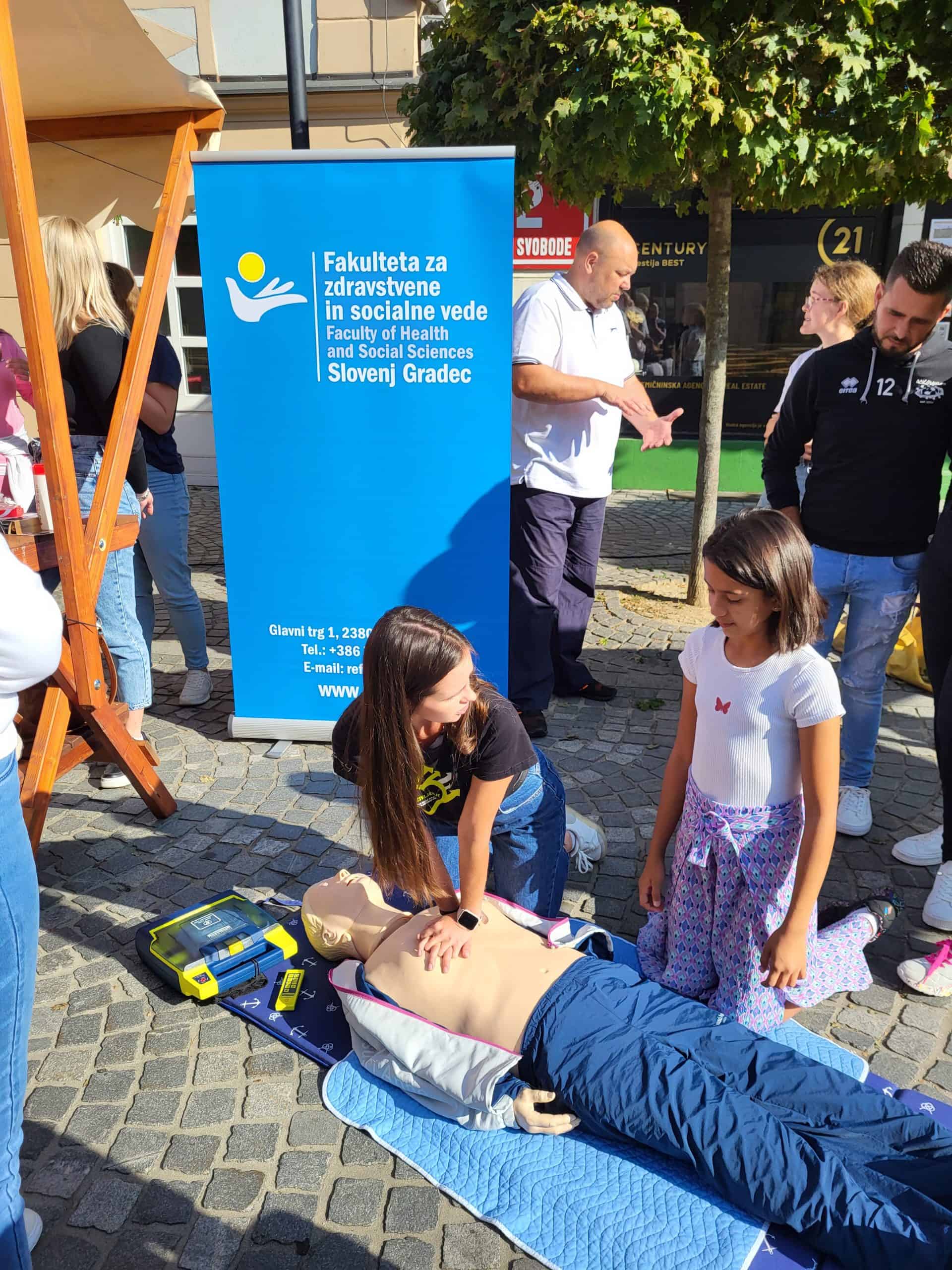 Na Trgu svobode v Slovenj Gradcu bodo študentke in študentje FZSV SG 12. oktobra, med 9. in 13. uro ozaveščali o pomenu temeljnih postopkov oživljanja in prikazovali uporabo avtomatskega defibrilatorja AED, ki je namenjen nudenju pomoči v primeru nenadnega srčnega zastoja.