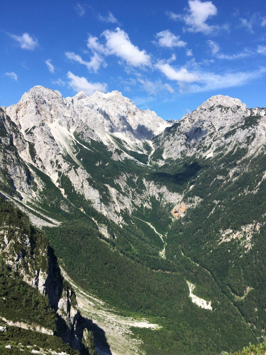 Od koče so se povzpeli do Zgornje jame. Pri spominski tabli so se obrnili v desno in zaplezali po grebenu, kjer so jim izdatno pomagale jeklenice. Prispeli so na sončno stran Krofičke, kjer so lahko ponovno občudovali planinsko cvetje. Srečno so našli prehod do vrha, kjer so si privoščili kratko malico in počitek.