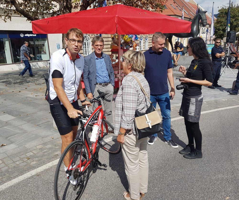 V Slovenj Gradcu je kolesarje pričakala tudi naša ekipa, pozdravila pa sta jih župna MO Slovenj Gradec Tilen Klugler in poslanec v DZ Jože Lenart. Na poti iz Slovenj Gradca do Dravograda se jim je pridružila še skupina kolesarjev iz Dravograda, na čelu s podžupanom Antonom Preksavcem. Kolesarski odpravi Mladinske iniciative pa se je prvič do zdaj v Slovenj Gradcu pridružil tudi ravenski župan dr. Tomaž Rožen, ki je kolesarje pospremil do končnega cilja pred mestno hišo na Ravnah na Koroškem. Na cilju pa jih je pričakal tudi poslanec v DZ Jani Prednik.