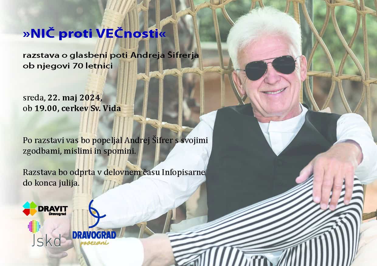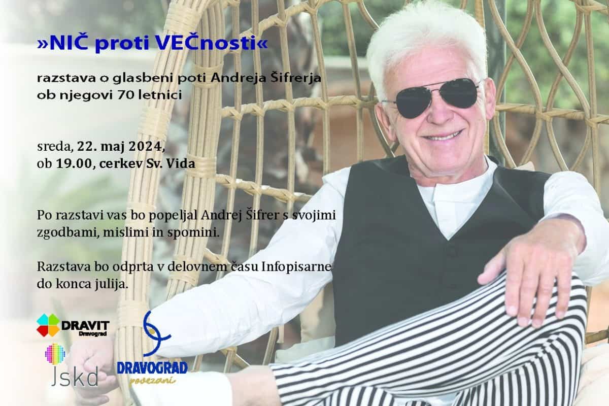 Andrej Šifrer, priznani slovenski glasbenik, prihaja v Dravograd, kjer bo na ogled razstava o njegovem bogatem glasbenem ustvarjanju. Razstava Gorenjskega muzeja z naslovom »NIC proti VEČnosti« bo predstavljena v cerkvi sv. Vida, odprtje pa bo v sredo, 22. maja 2024 ob 19.00 uri.