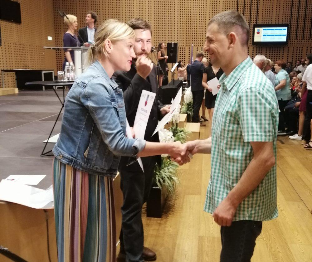 »V Centru za usposabljanje, delo in varstvo Črna na Koroškem se že več let s prostovoljstvom ukvarjajo tudi naši uporabniki, ki s svojim prostovoljskim delom pomagajo bogatiti naš vsakdan. Letos sta za svoje prostovoljsko delo prijela priznanje Anita Rednak in Branko Mavrič. S ponosom sta se udeležila prireditve na Brdu pri Kranju,,« je po prireditvi povedala direktorica CUDV Črna na Koroškem, mag. Dalja Pečovnik.