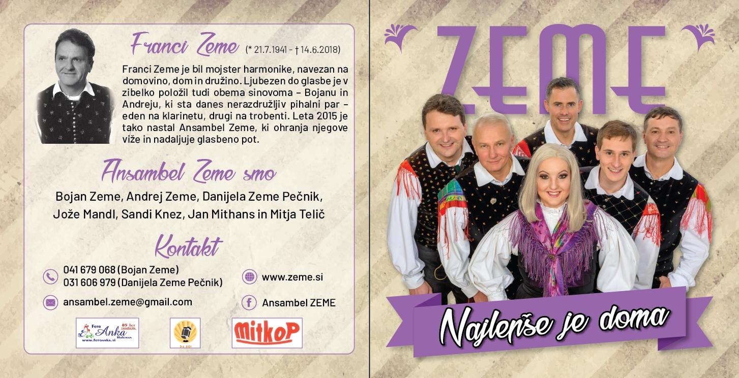 Pri tem naj še omenimo, da je ansambel Zeme ustanovil harmonikar Franci Zeme, zdaj pa tradicijo nadaljujeta njegova sinova Bojan in Andrej, ki sta kvintetovski zasedbi natančna in nerazdružljiva pihalca. Pogosto pa v ansamblu zapoje tudi Francijev vnuk, Dominik, Bojanov in Danijelin sin.