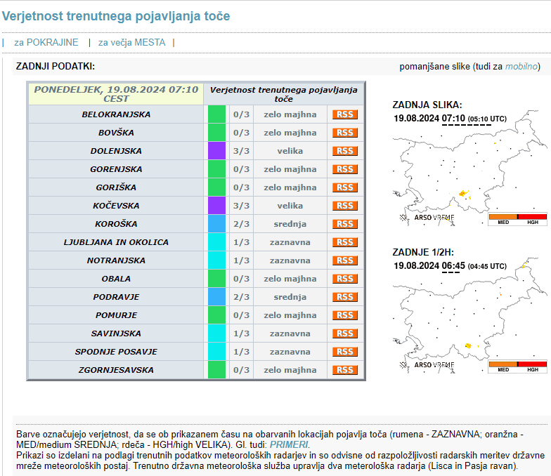 Danes čez dan in zvečer bodo predvsem na jugovzhodu Slovenije možni dolgotrajnejši in močni nalivi. Na Primorskem je razglašena velika požarna ogroženost naravnega okolja.
