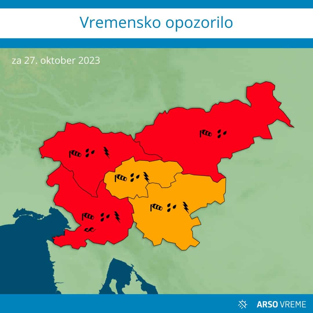 Najhuje bo v dopoldanskem času, ko je zaradi vetra, padavin in neviht tudi za osrednjo in jugovzhodno Slovenijo Arso izdal opozorilo, a v tem delu oranžne stopnje.