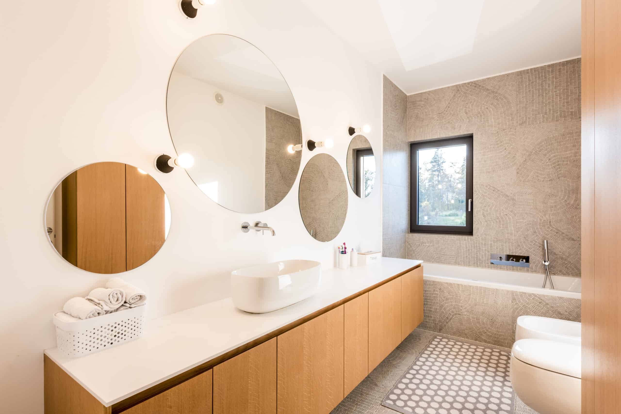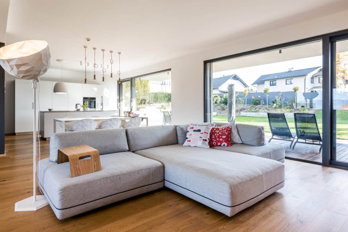 Dnevno-bivalni del je opremljen zelo izbrano: v njem se harmonično prepletajo leseni, beli in sivi pohištveni kosi ter raznolika svetila. Sodobnim oblikovalskim in po meri izdelanim kosom pohištva pa kontrast delajo mladostni in sproščeni dodatki, ki v družinsko hišo vnašajo igrivo energijo.